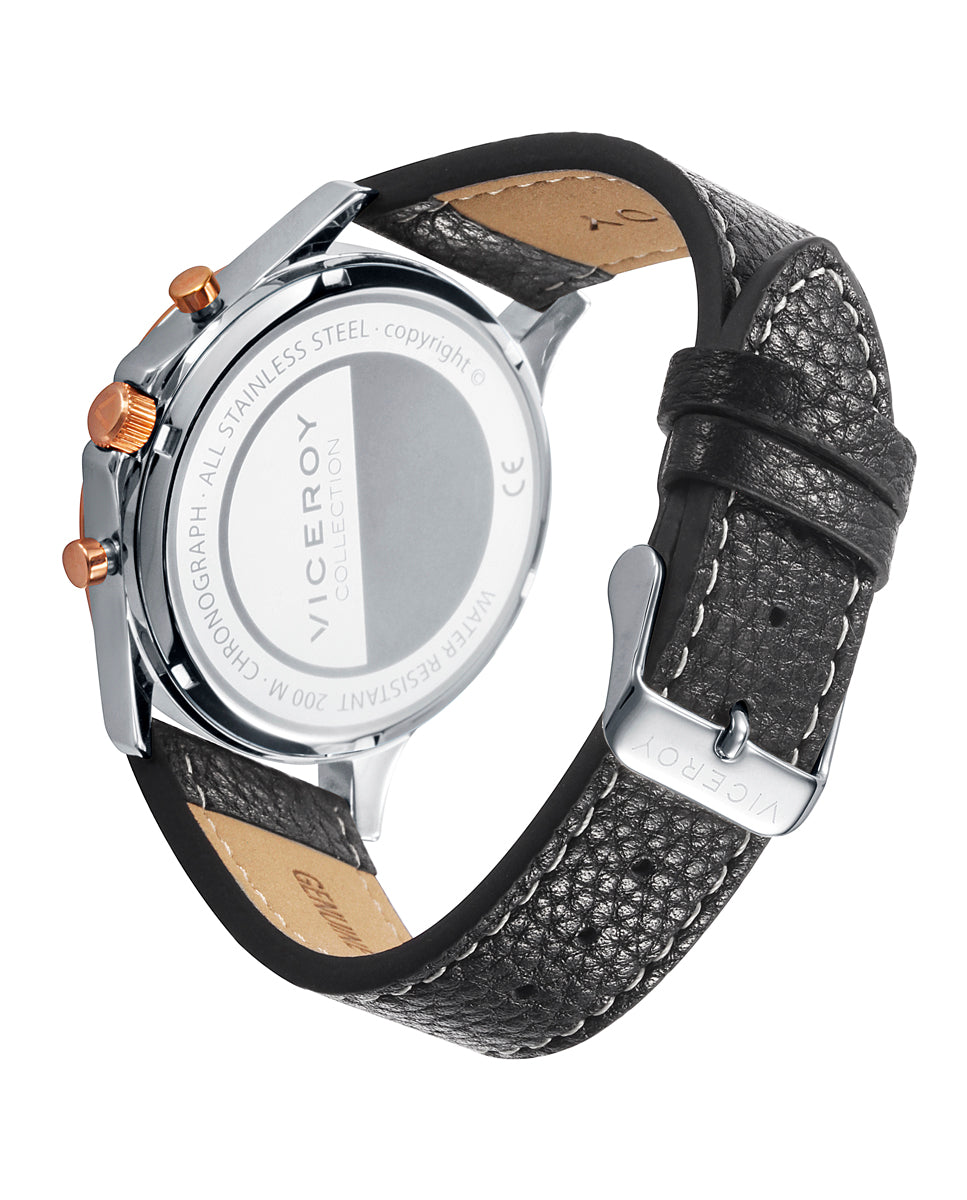 Orologio da uomo Dress con cassa in acciaio bicolore e cinturino in pelle nera