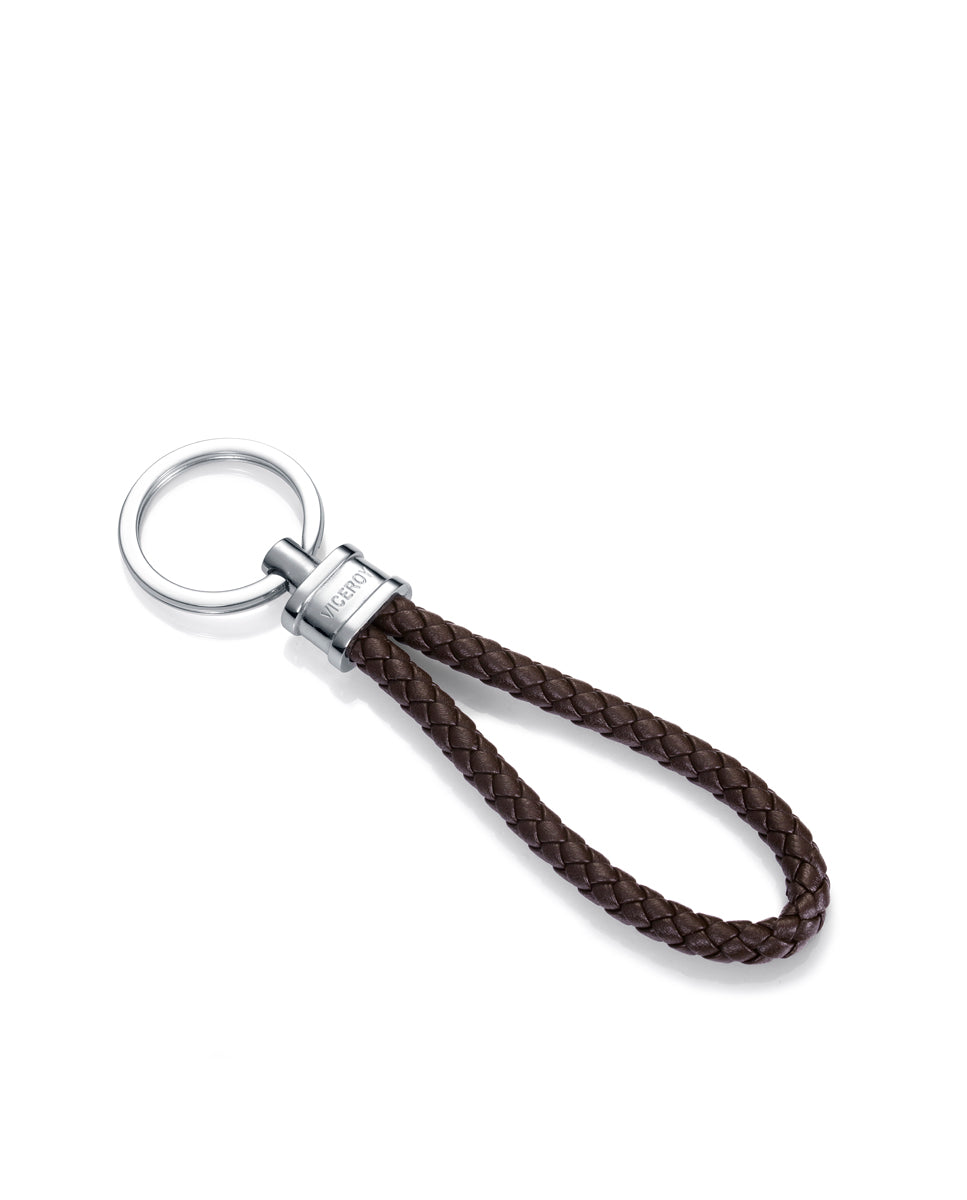Portachiavi Magnum da uomo in acciaio e pelle intrecciata marrone