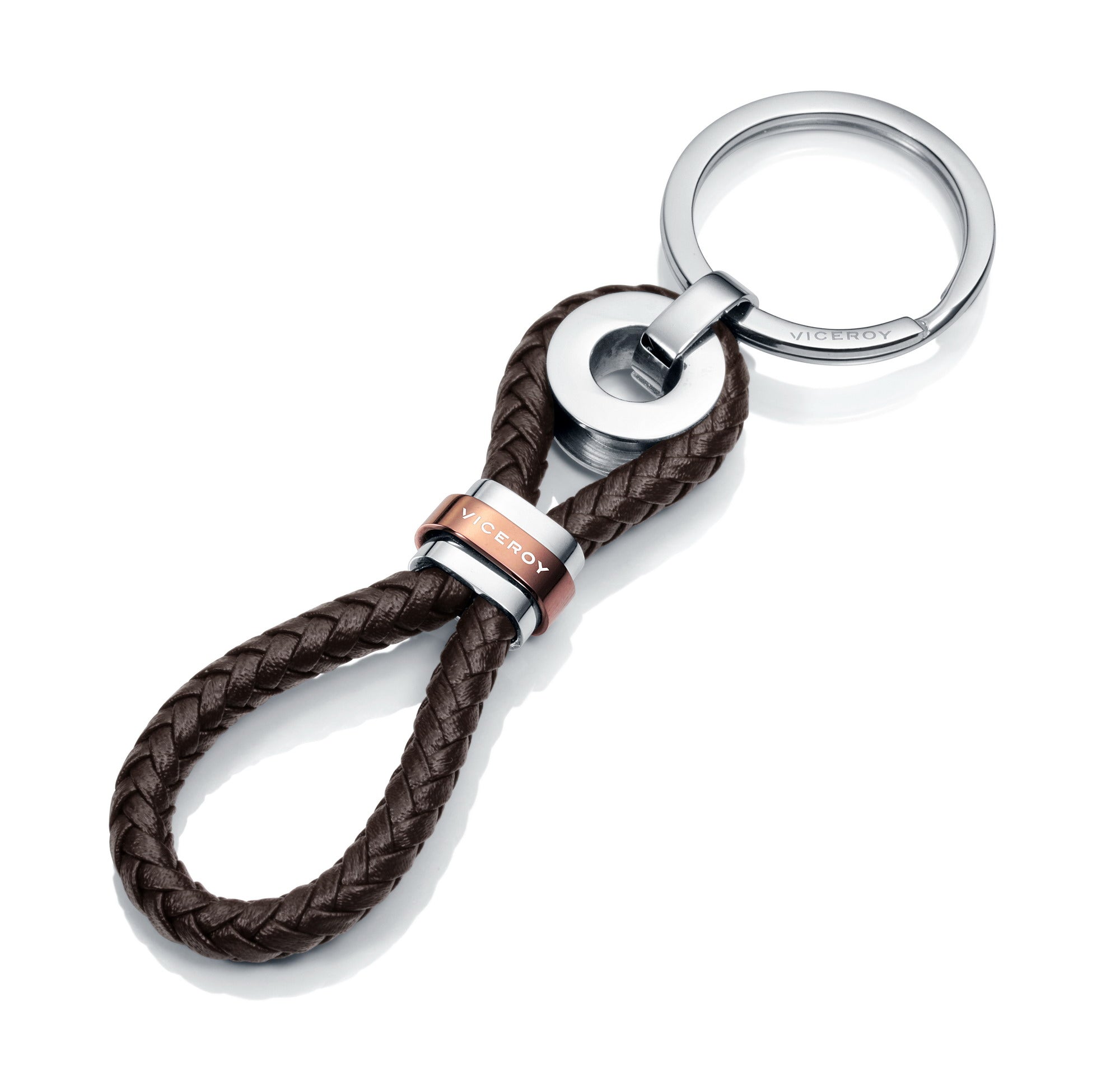 Portachiavi da uomo in acciaio e pelle marrone