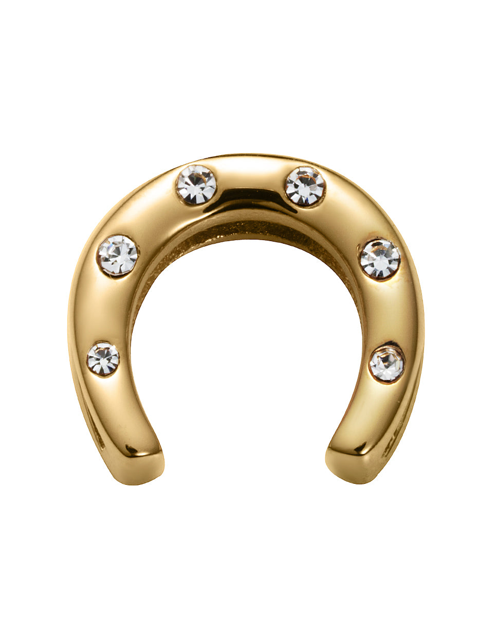 Motivo in acciaio IP dorato a forma di ferro di cavallo con zirconi da montare su bracciale personalizzabile