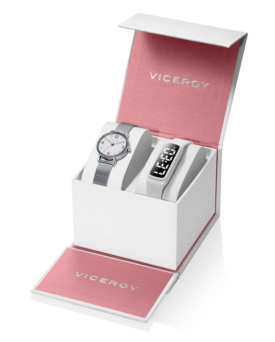 Pack de niña Viceroy Sweet tres agujas de acero con malla milanesa y pulsera de actividad