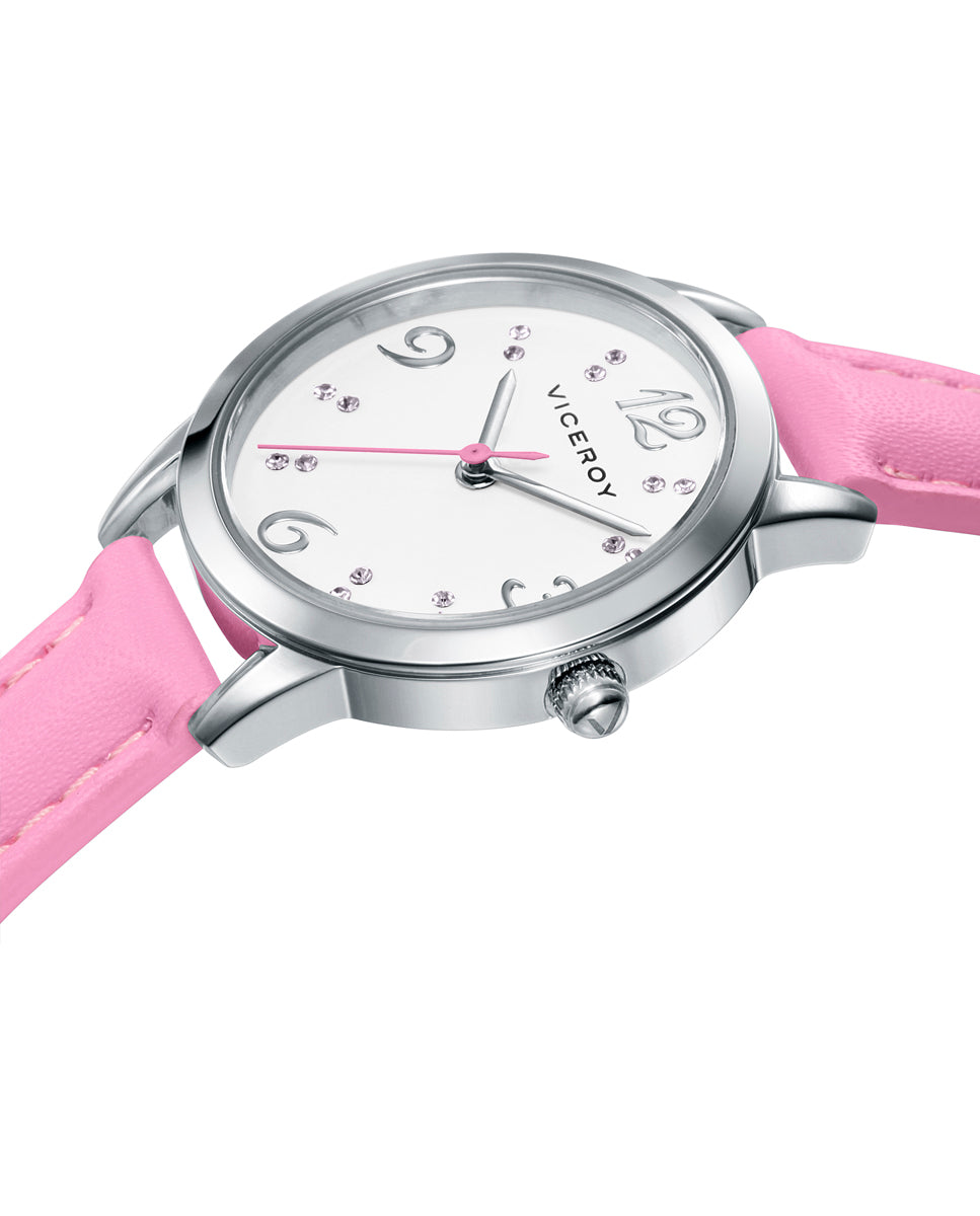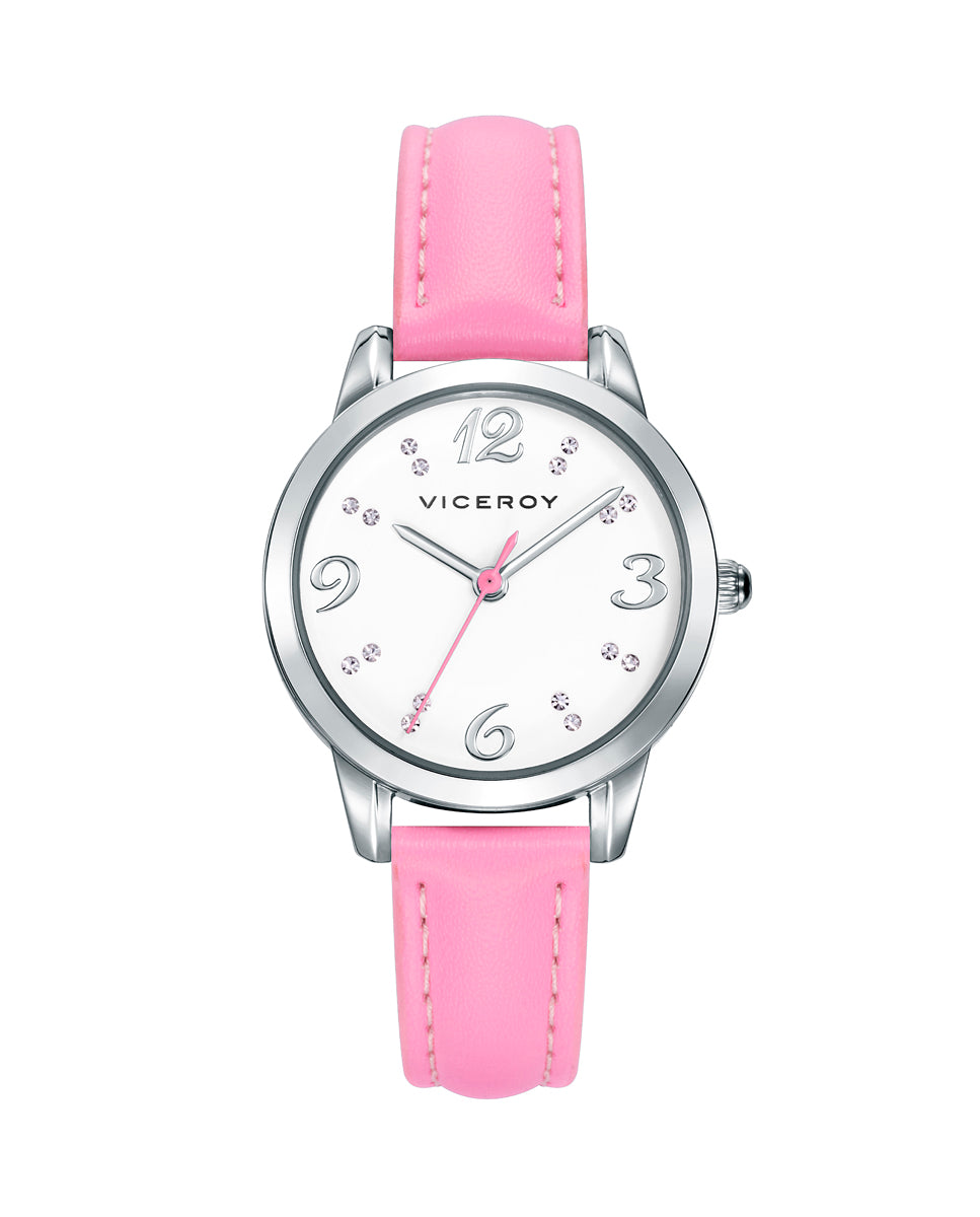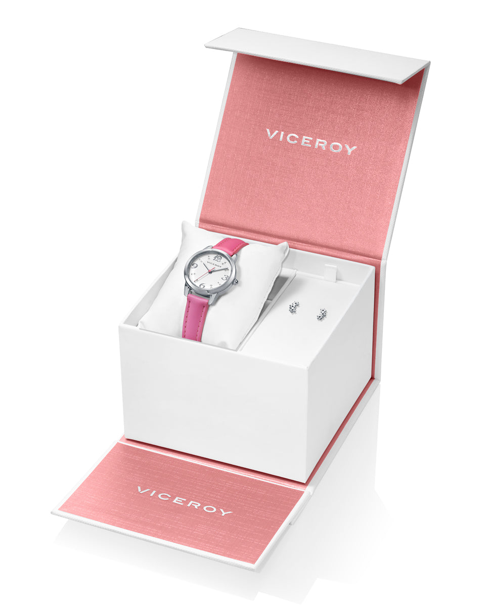 Pack de Niña Viceroy Sweet tres agujas de acero con correa de piel rosa y pendientes de plata