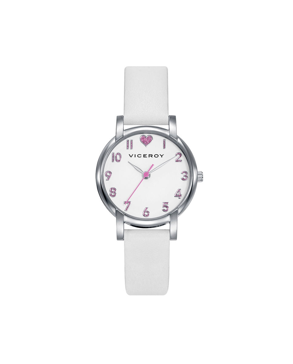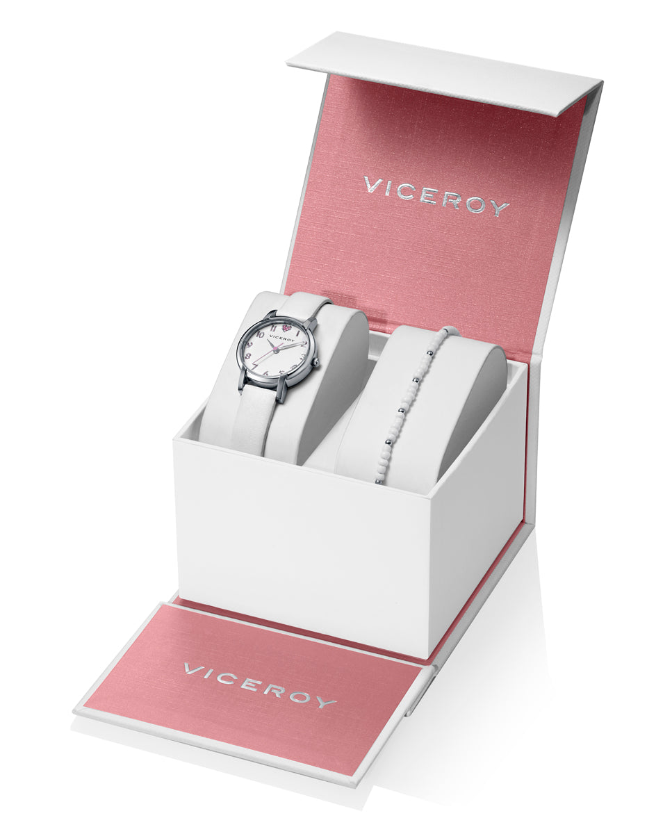 Pack de niña Viceroy Sweet tres agujas de acero con correa de piel sintética blanca y pulsera