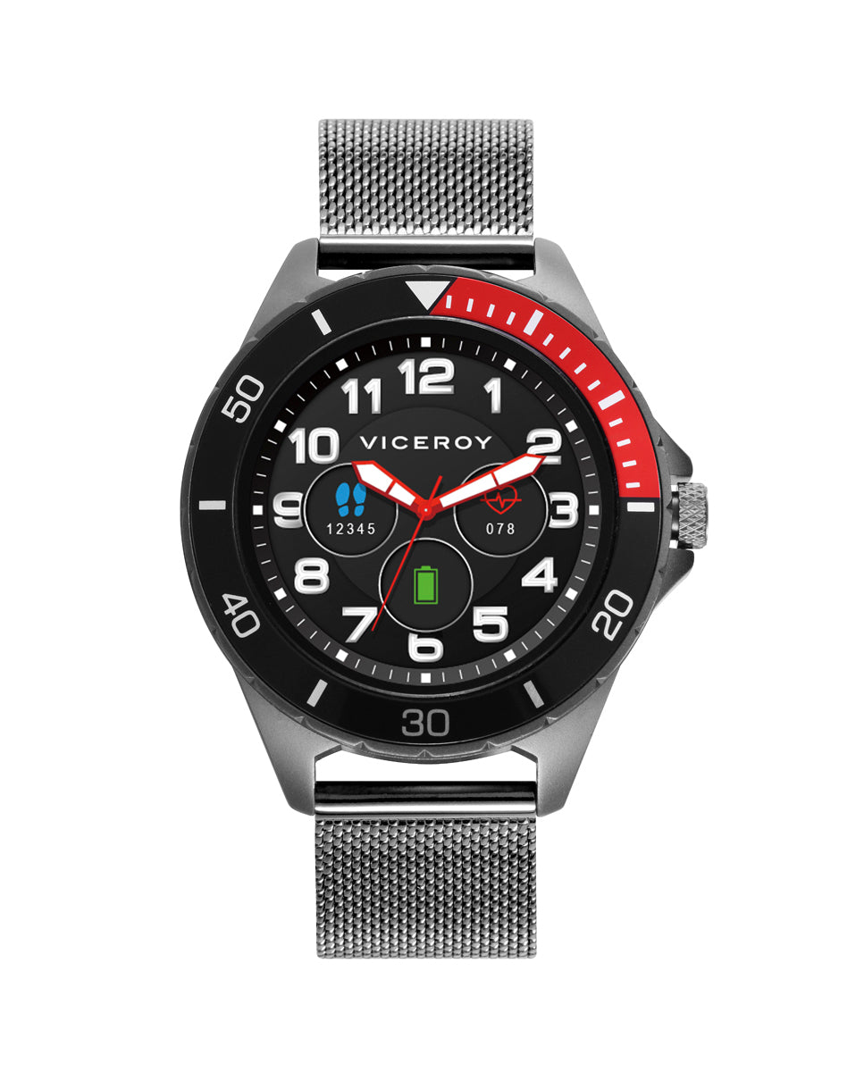 Smartwatch da bambino Smartpro con maglia milanese IP grigio e cinturino aggiuntivo in silicone nero
