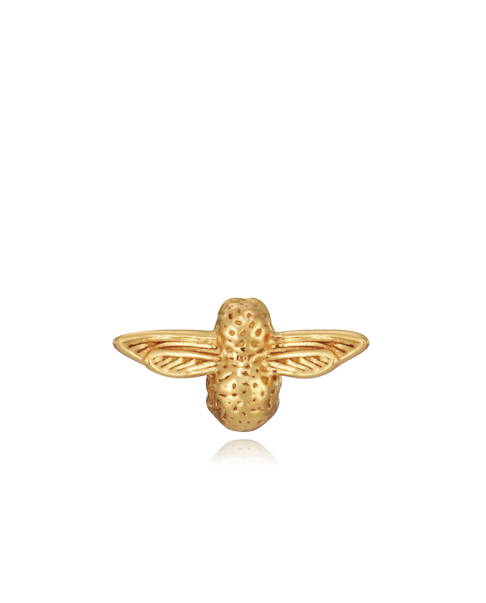 Pendiente individual Trend de plata bañada en oro con forma de abeja
