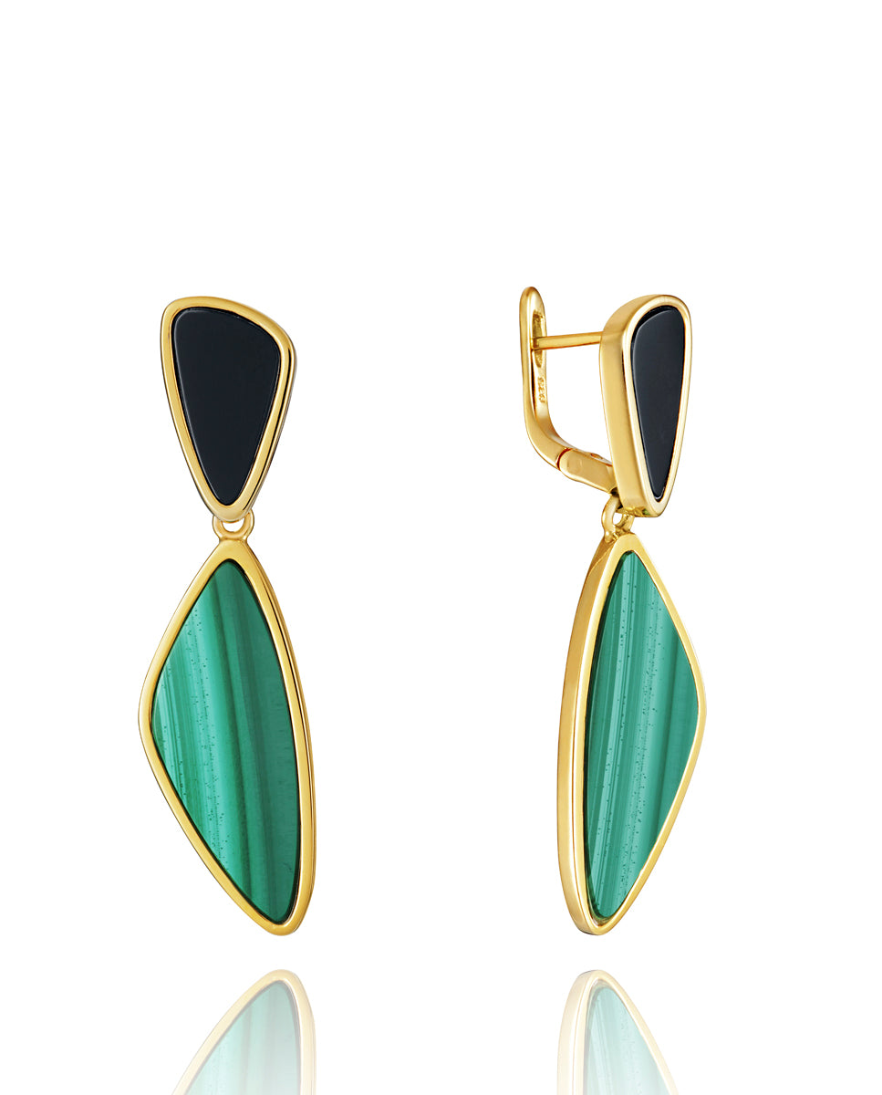Pendientes Plata Con Onix Y Malaquita Sra Jw