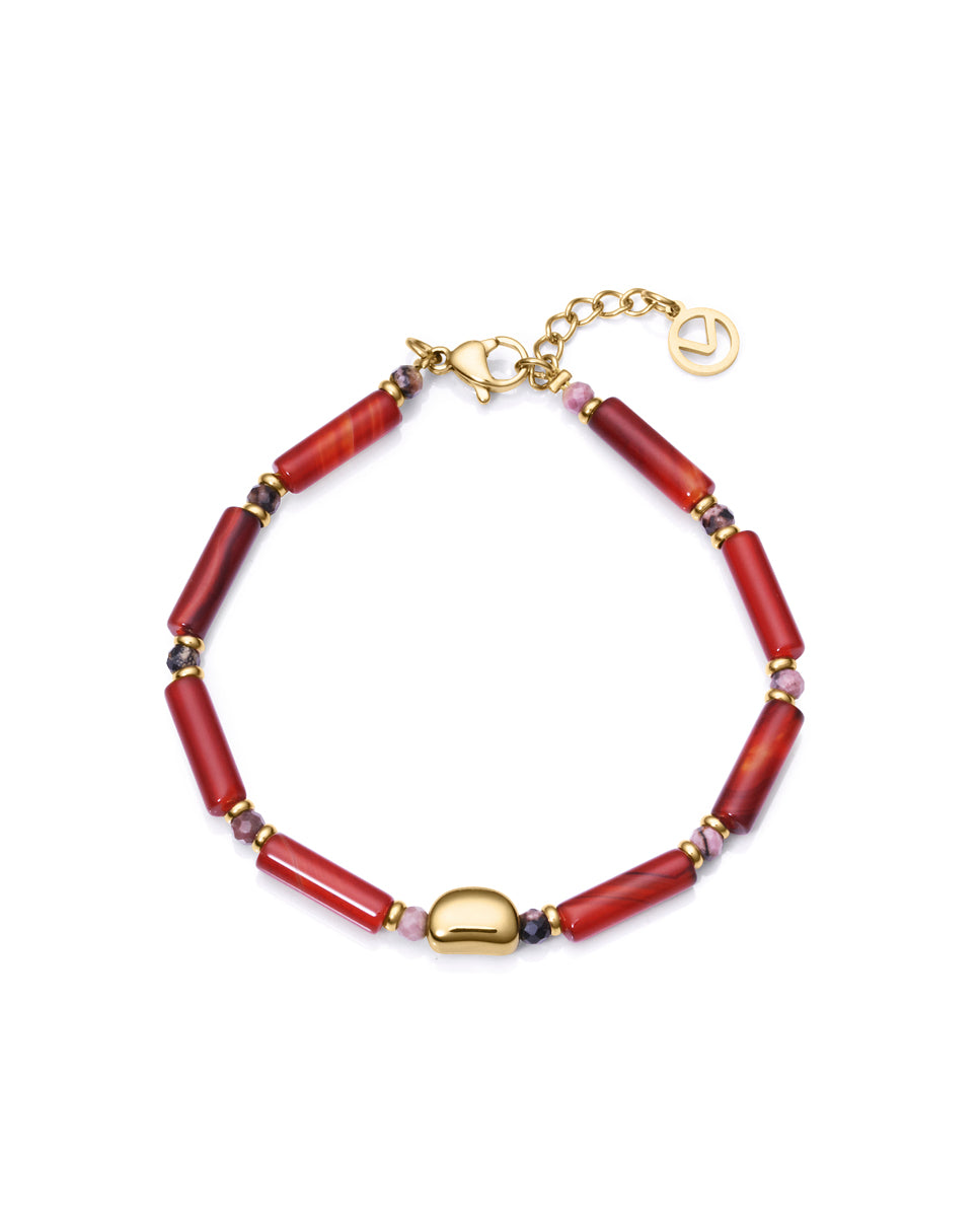 Elegante bracciale in acciaio Ip oro con corniola rossa e rodonite