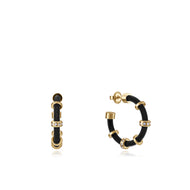 Eleganti orecchini in acciaio milanese nero con dettagli dorati e zirconi bianchi