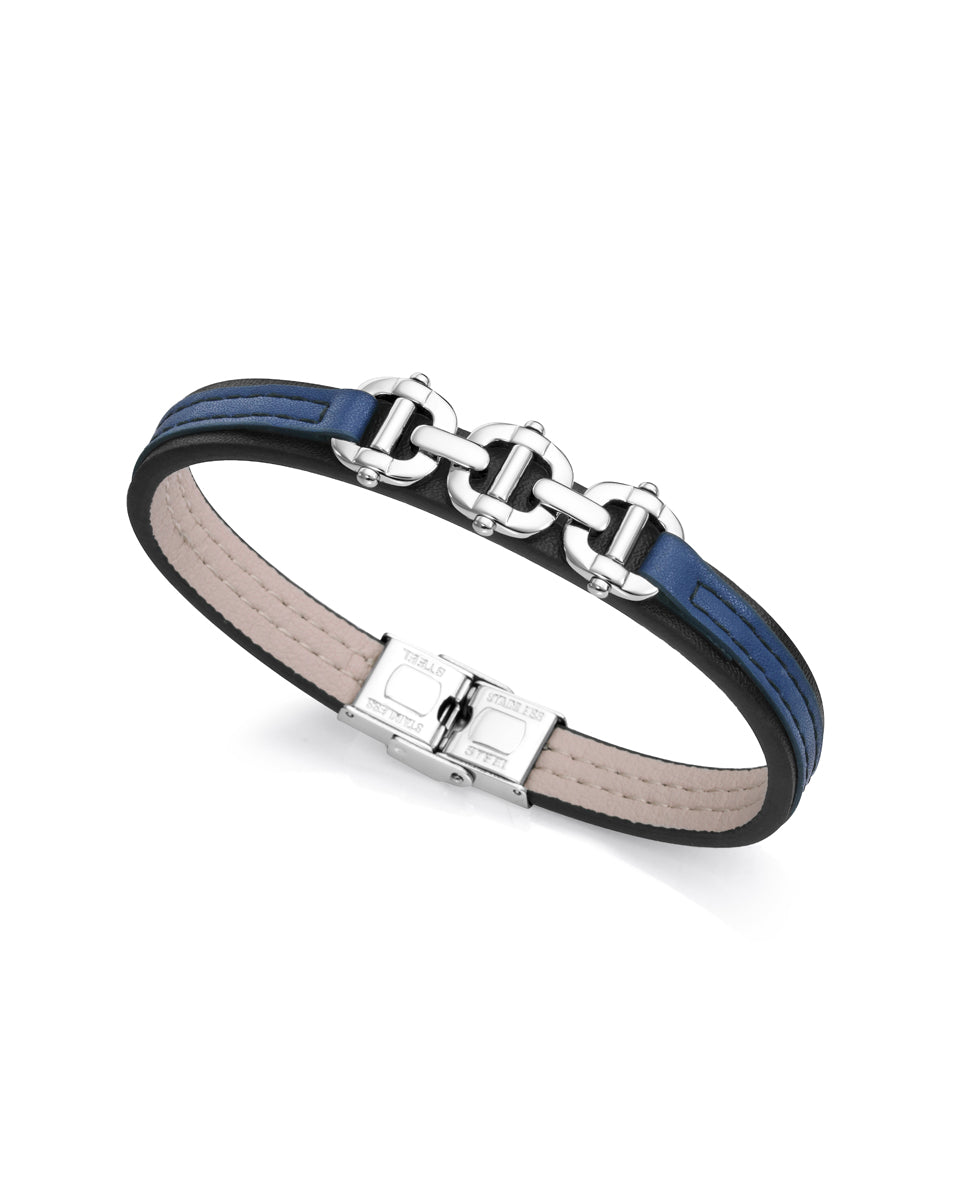 Bracciale Magnum in acciaio con motivo in pelle e acciaio nero e blu