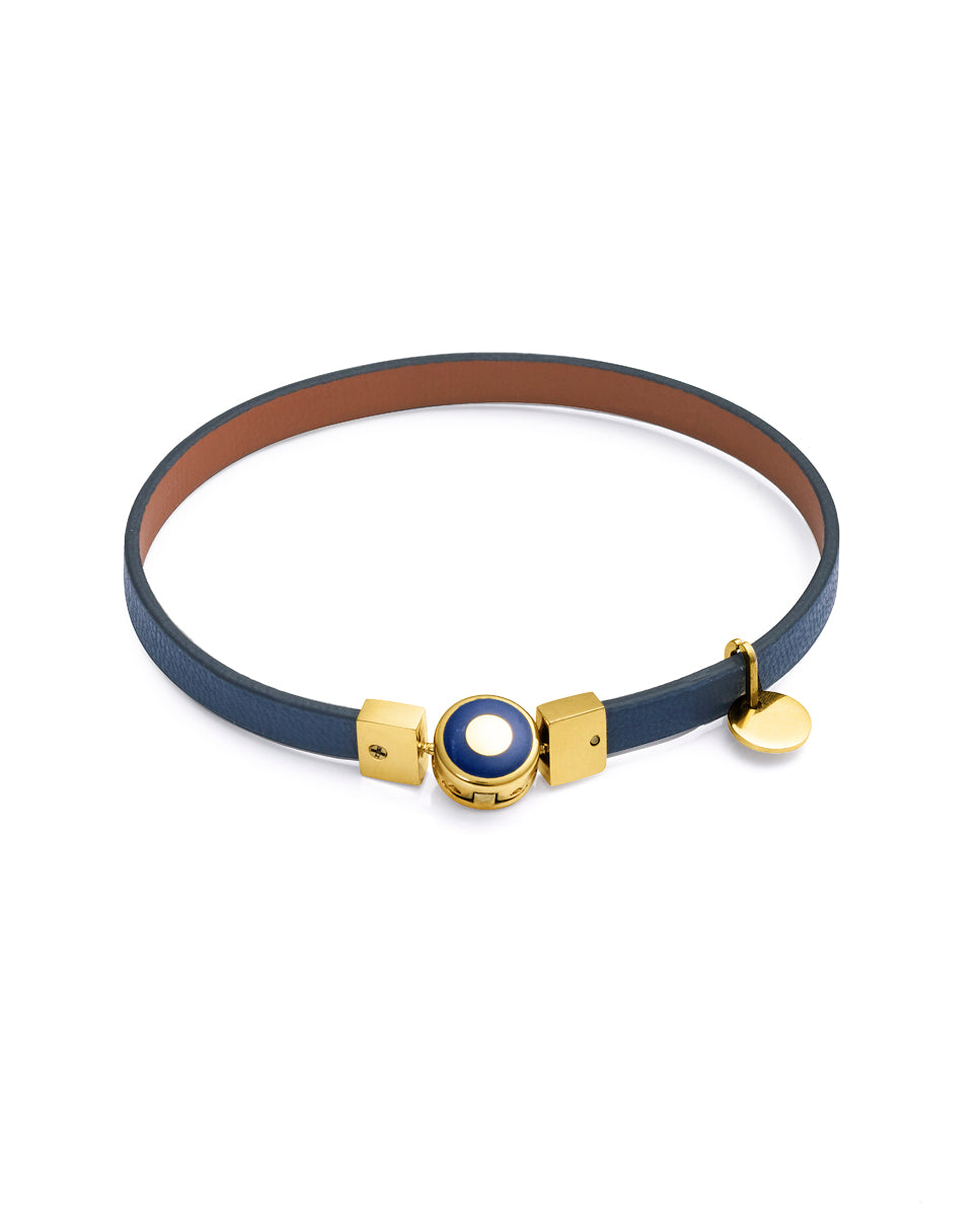 Bracciale eco in acciaio riciclato e Ip oro con cinturino vegan marrone