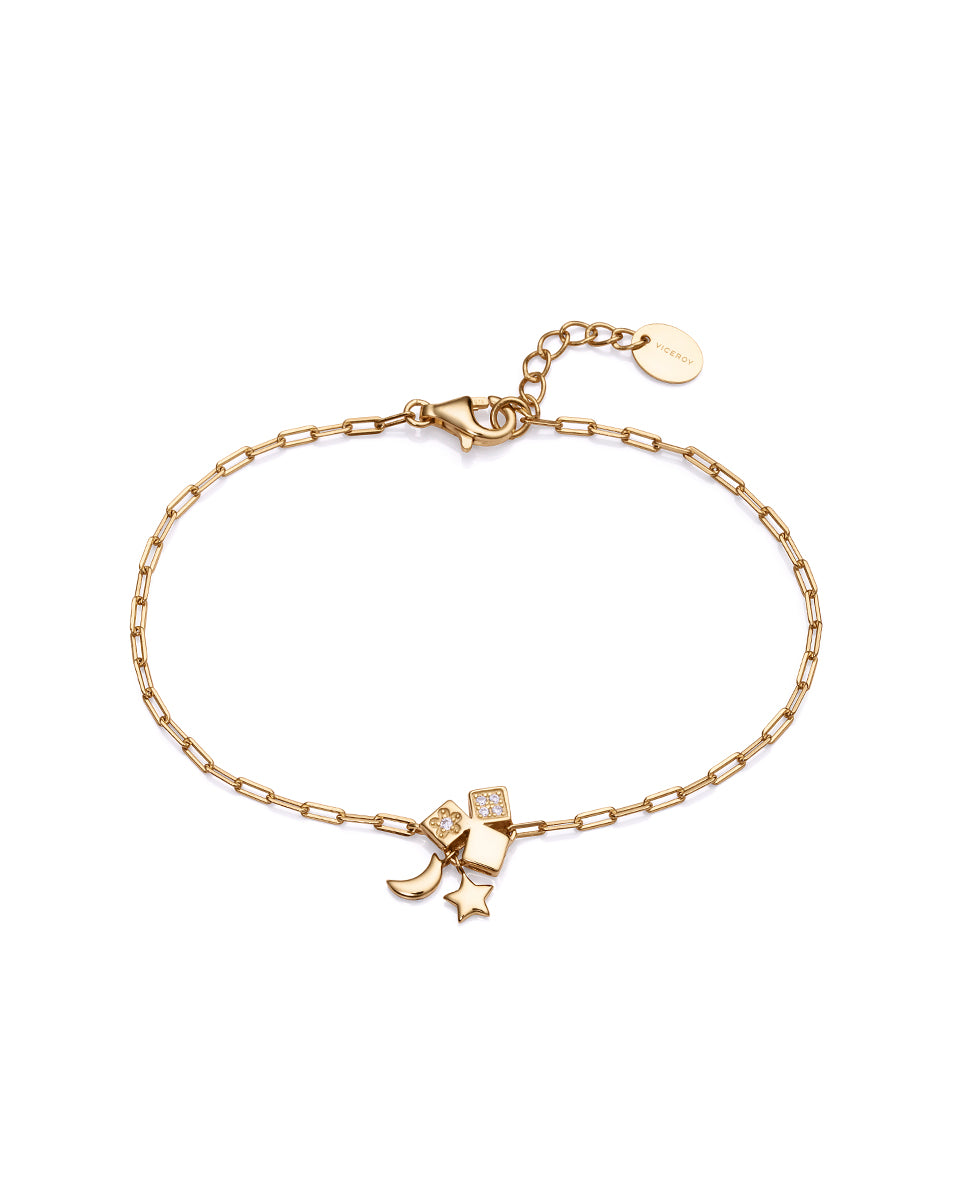 Bracciale Trend in argento sterling placcato oro con zirconi bianchi e pendenti luna e stella