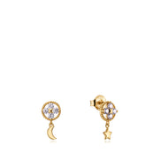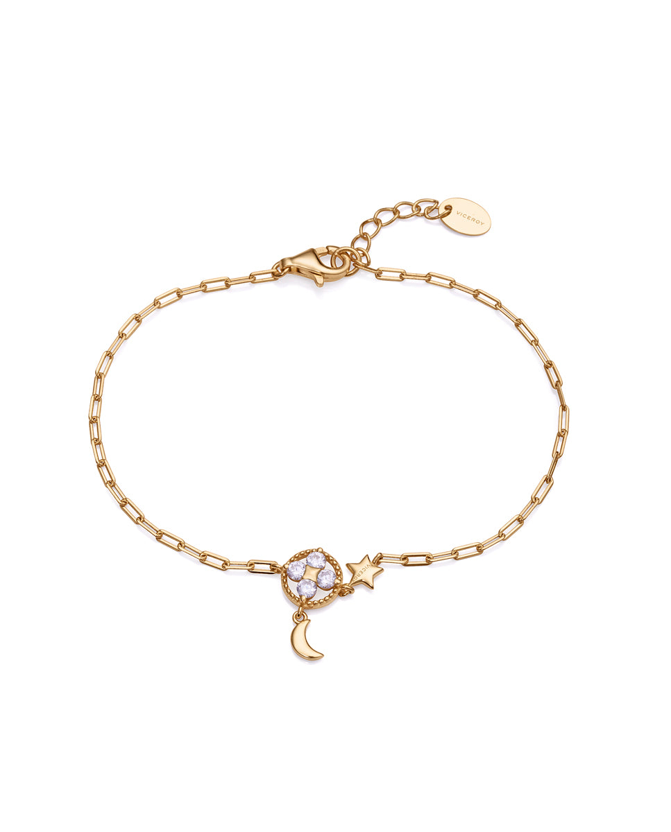 Bracciale Trend in argento sterling placcato oro con zirconi bianchi e pendenti luna e stella