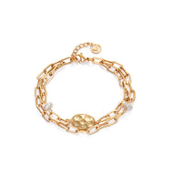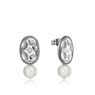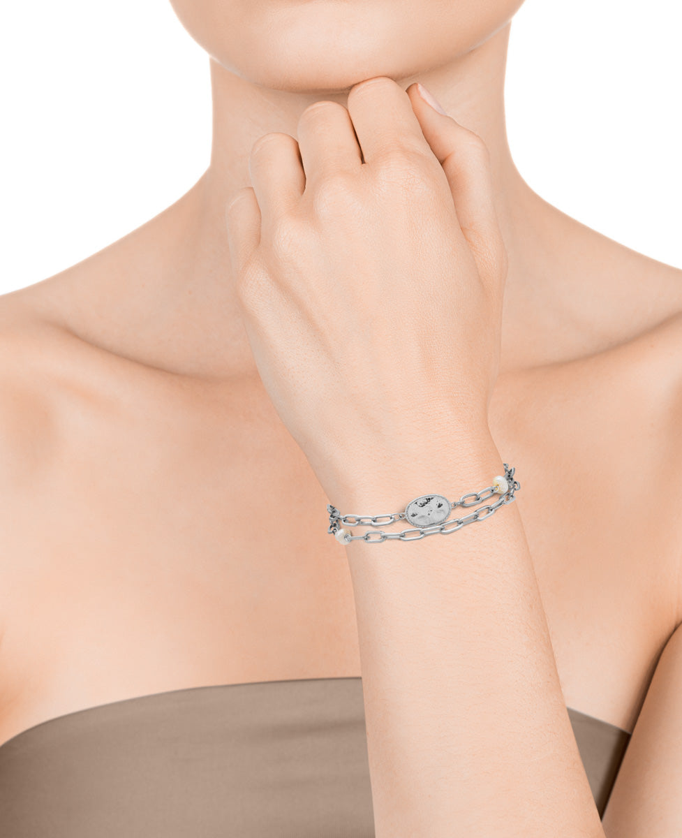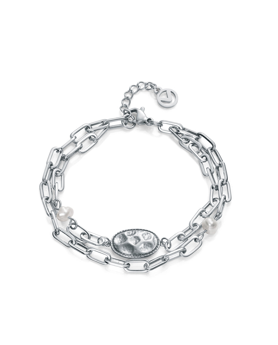 Pulsera Chic de acero con disco ovalado martilleado y perla
