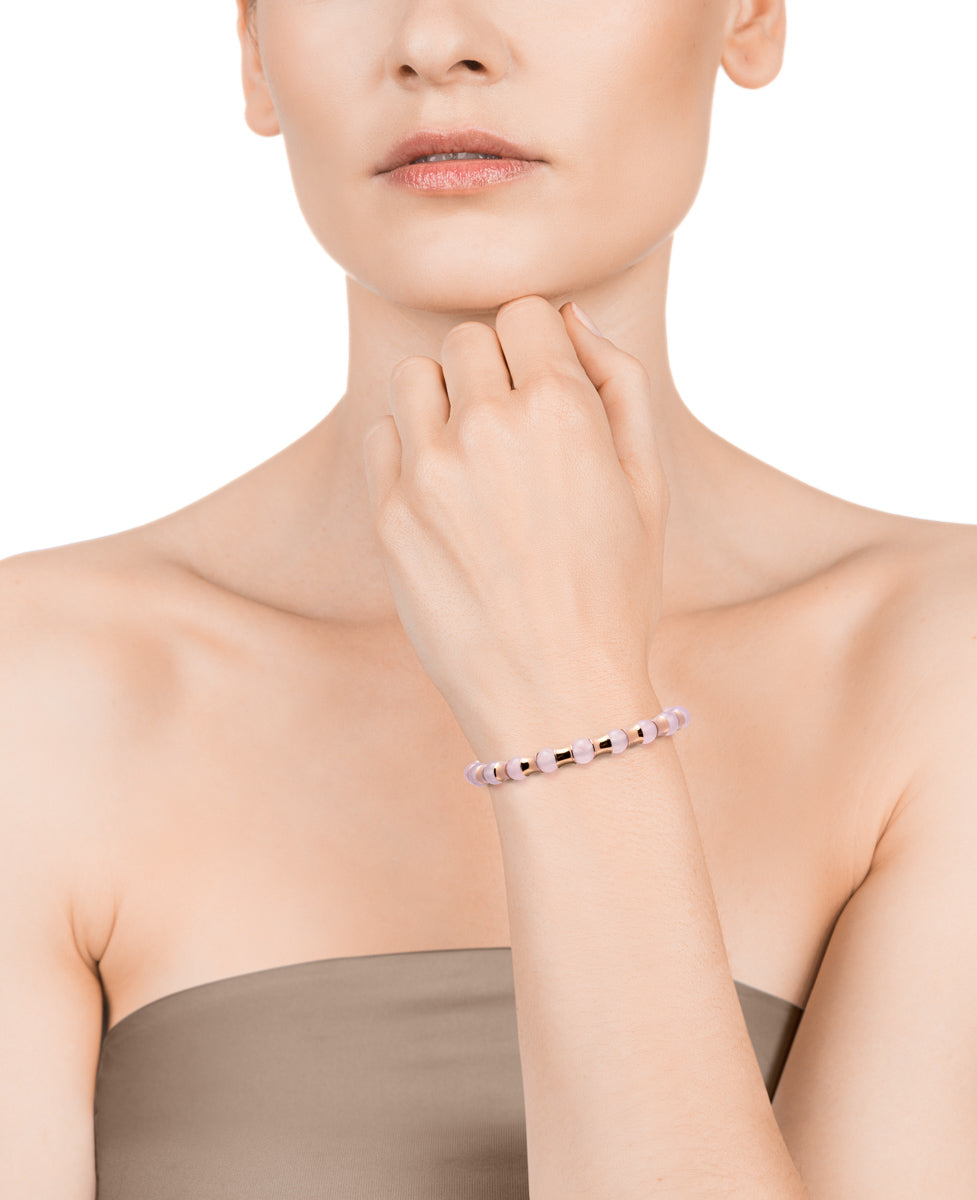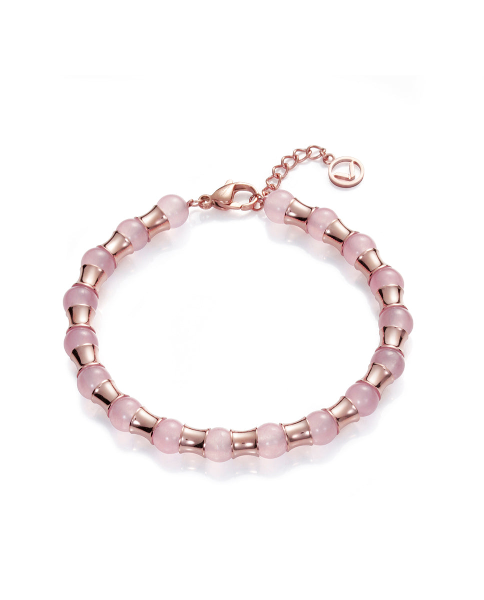 Pulsera Chic de acero rosado y piedras de cuarzo rosa naturales