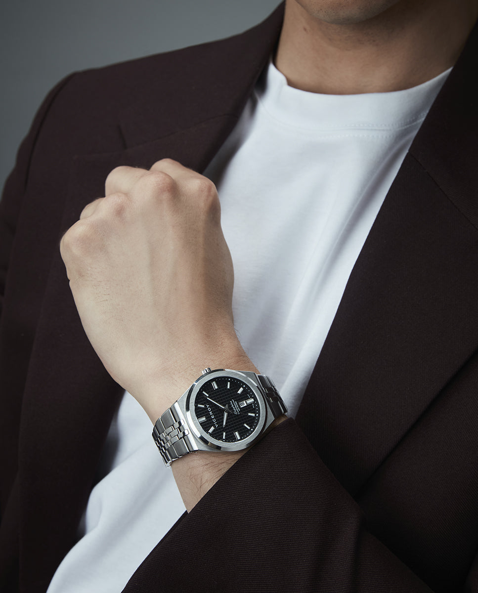 Reloj caja de acero 10 Atm, brazalete de acero, movimiento cuarzo Suizo, Swiss made
