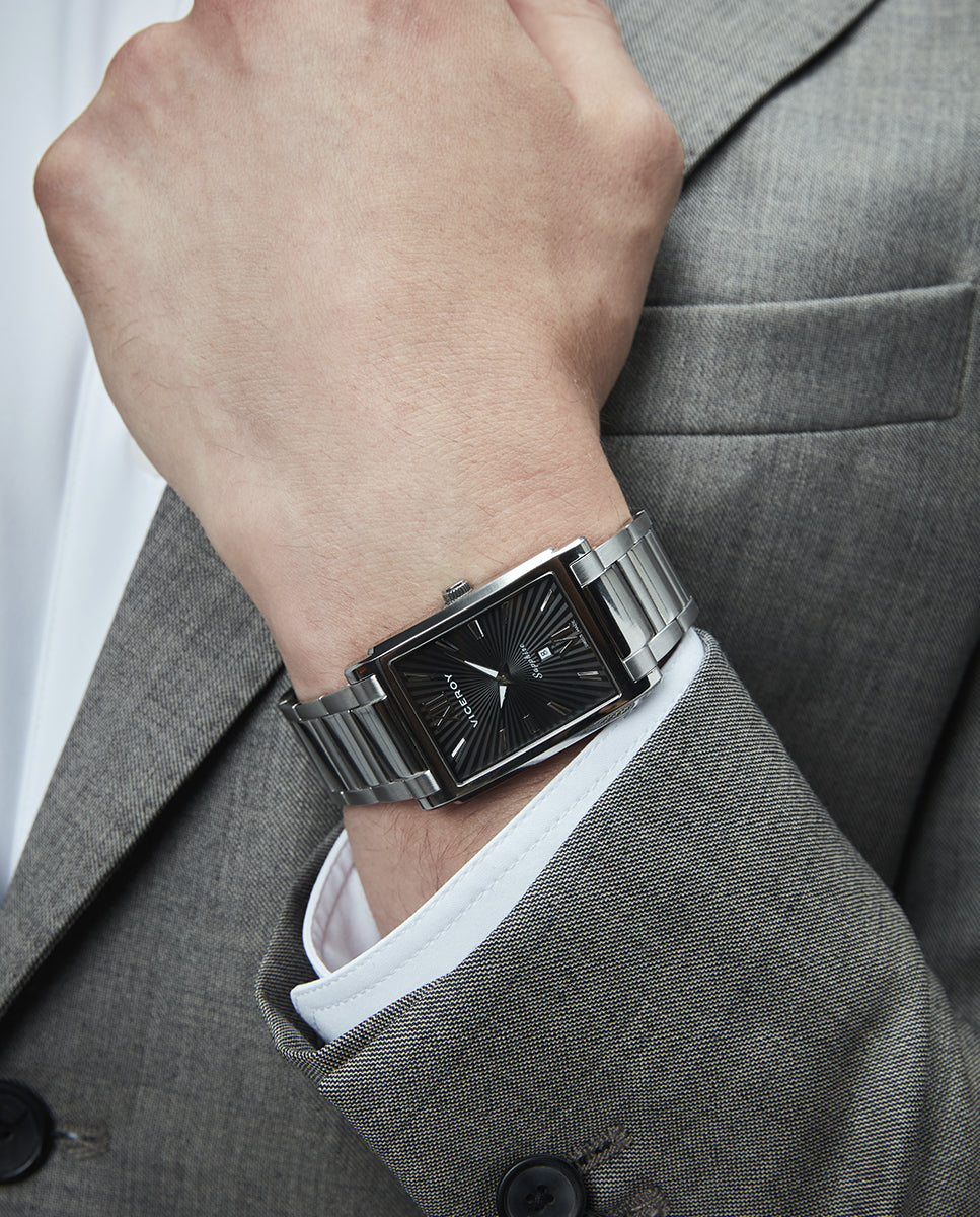 Reloj caja de acero 5 Atm, brazalete de acero, movimiento cuarzo Suizo, Swiss made