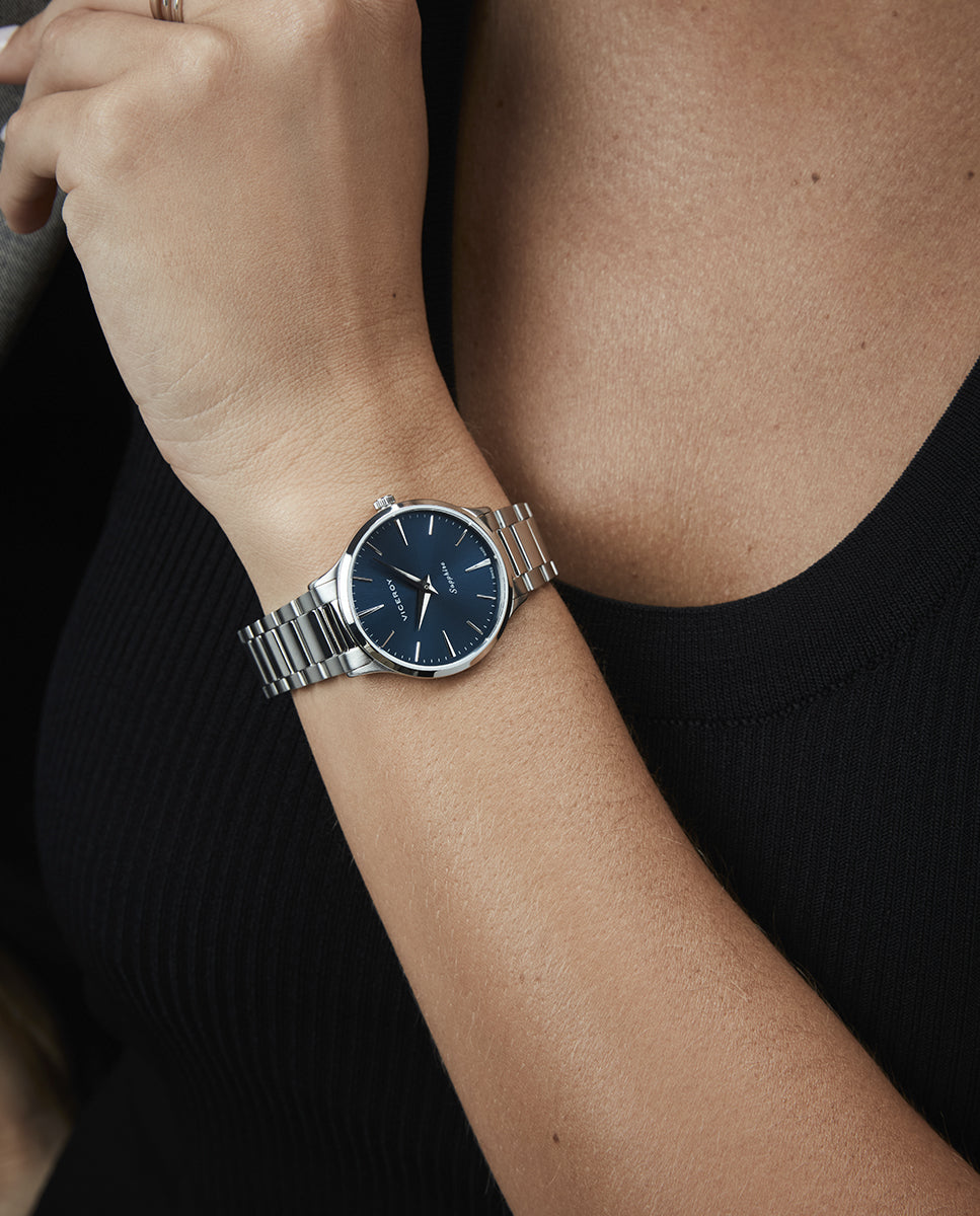 Reloj caja de acero 5 Atm, brazalete de acero, movimiento cuarzo Suizo, Swiss made