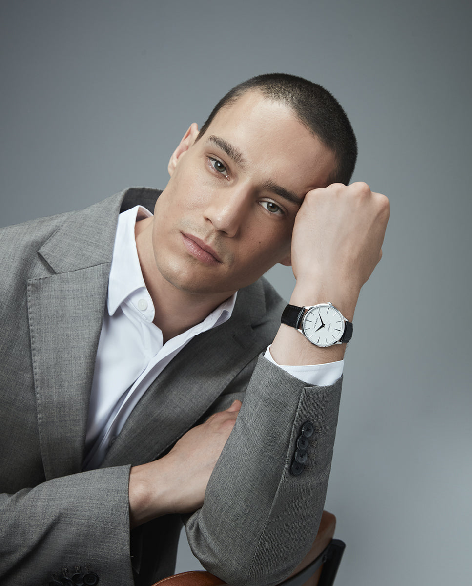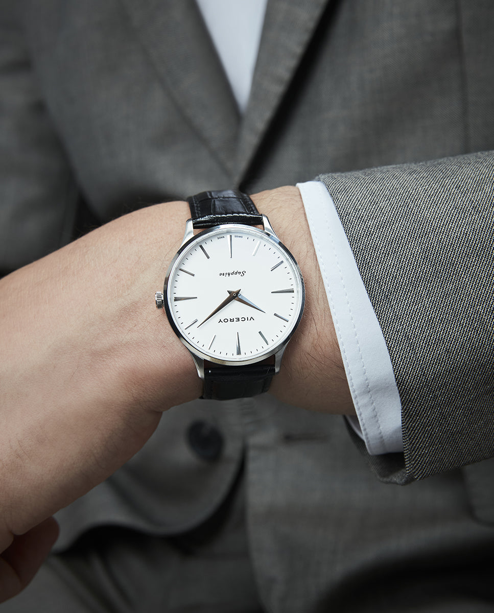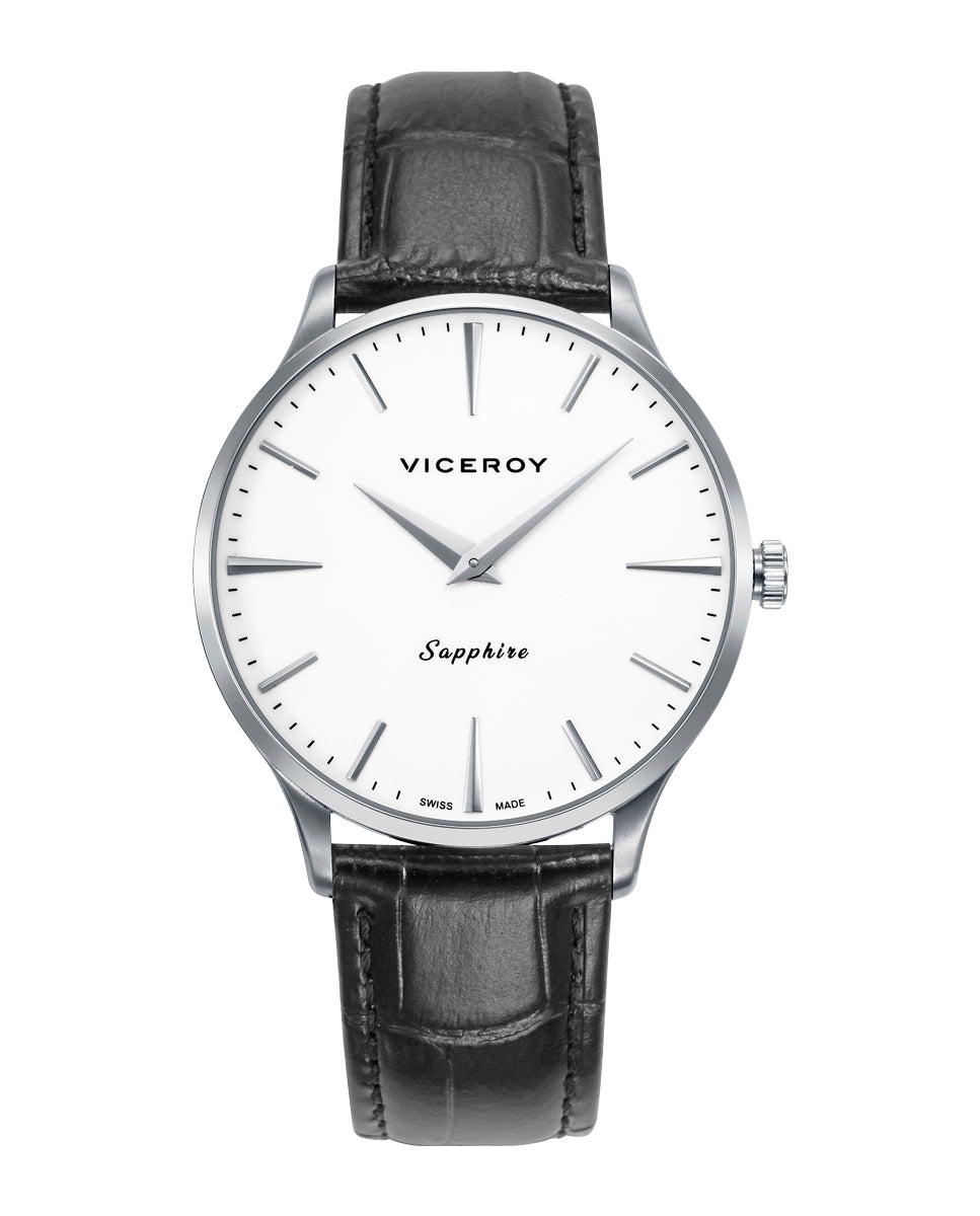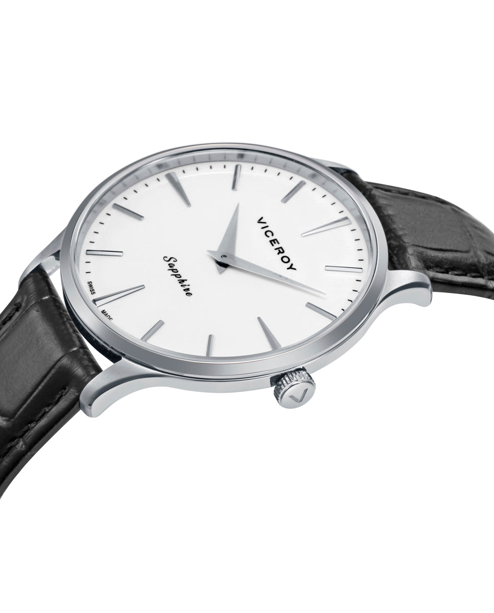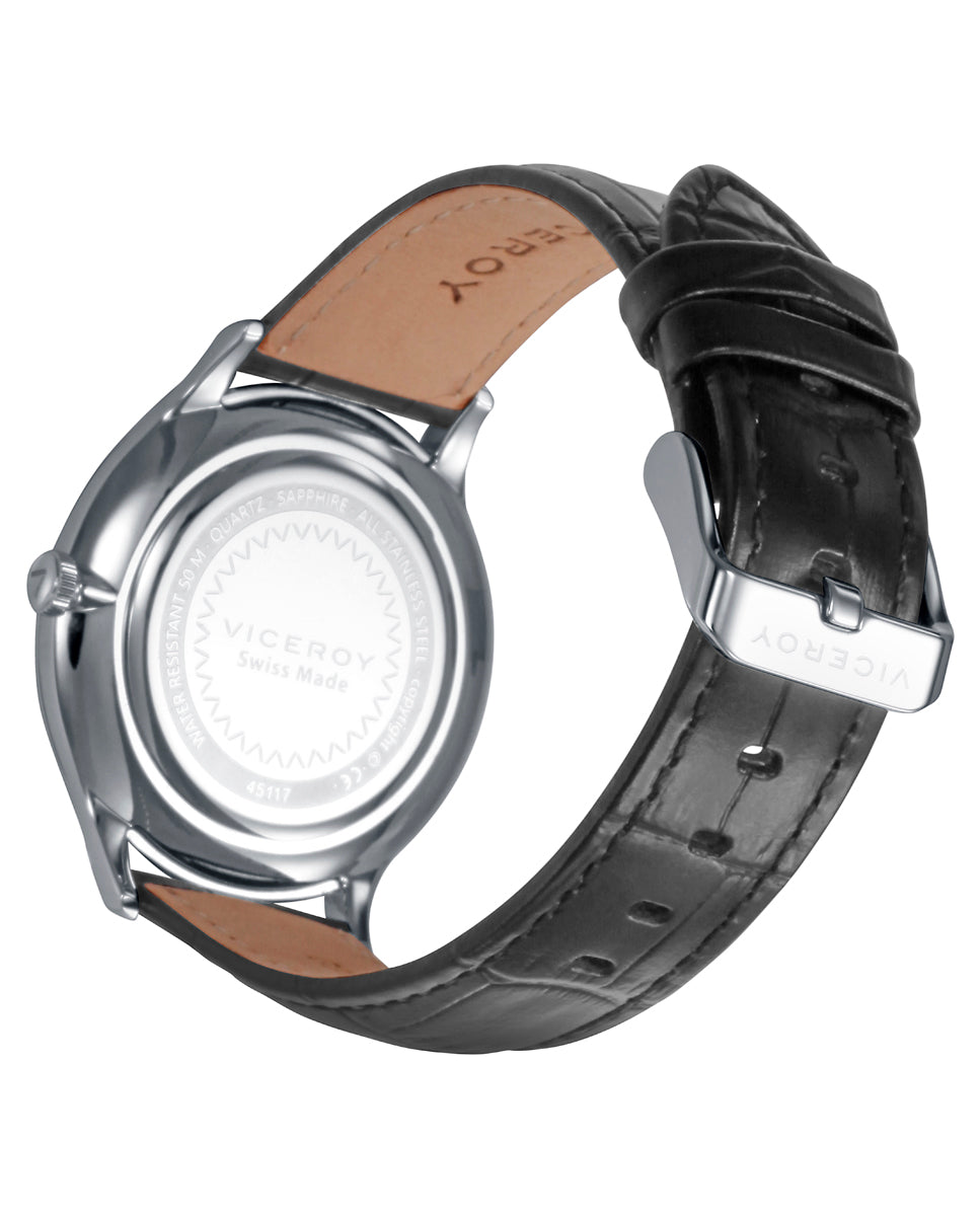 Reloj caja de acero 5 Atm, correa de piel negra, movimiento cuarzo Suizo, Swiss made