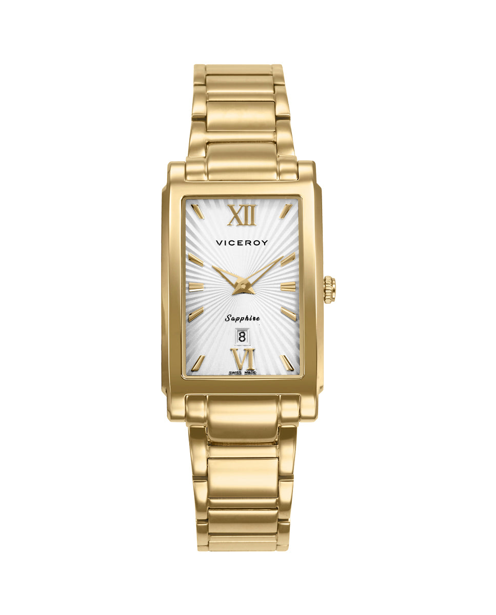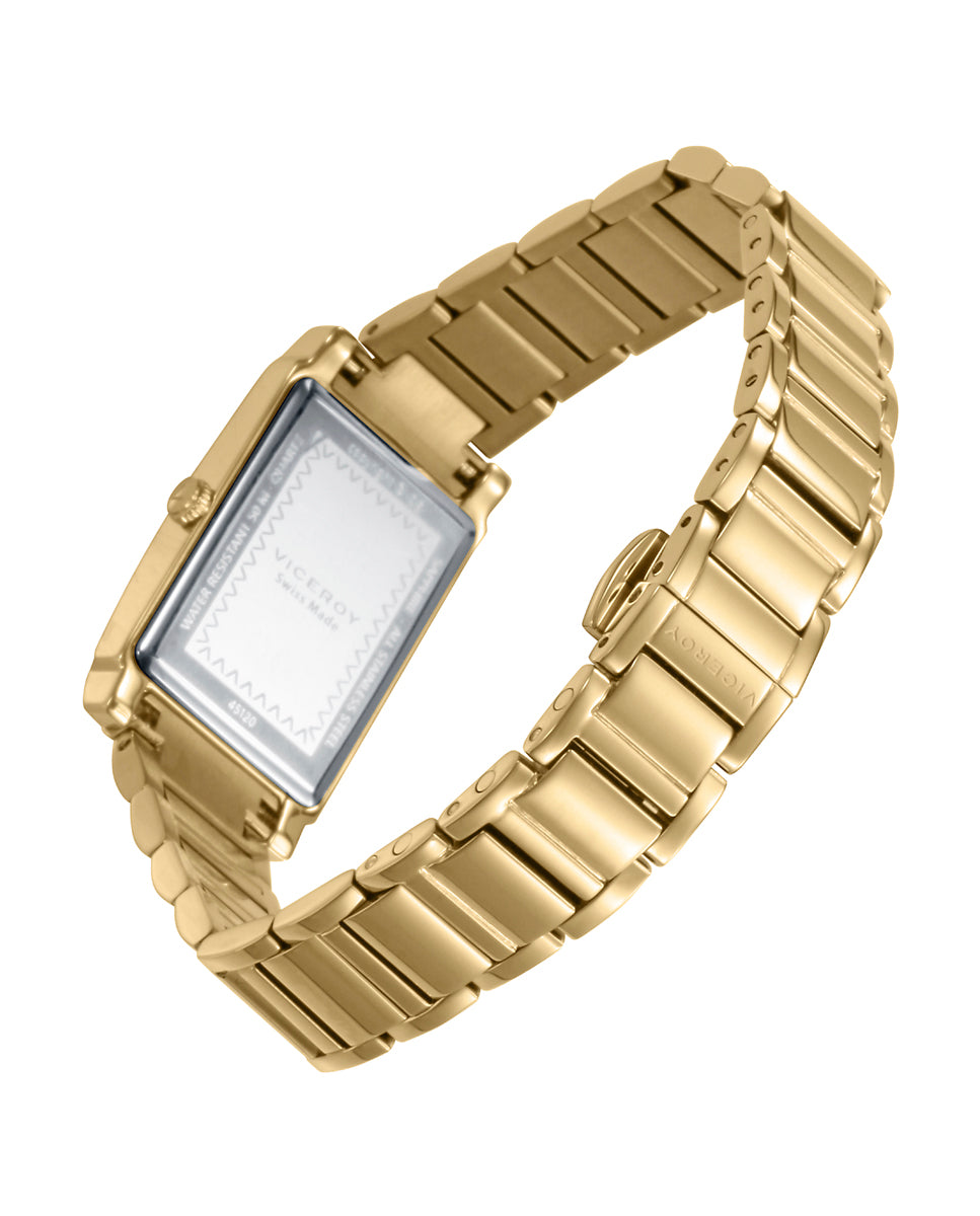 Reloj caja de acero Ip dorado 5 Atm, brazalete de acero Ip dorado, movimiento cuarzo Suizo, Swiss made