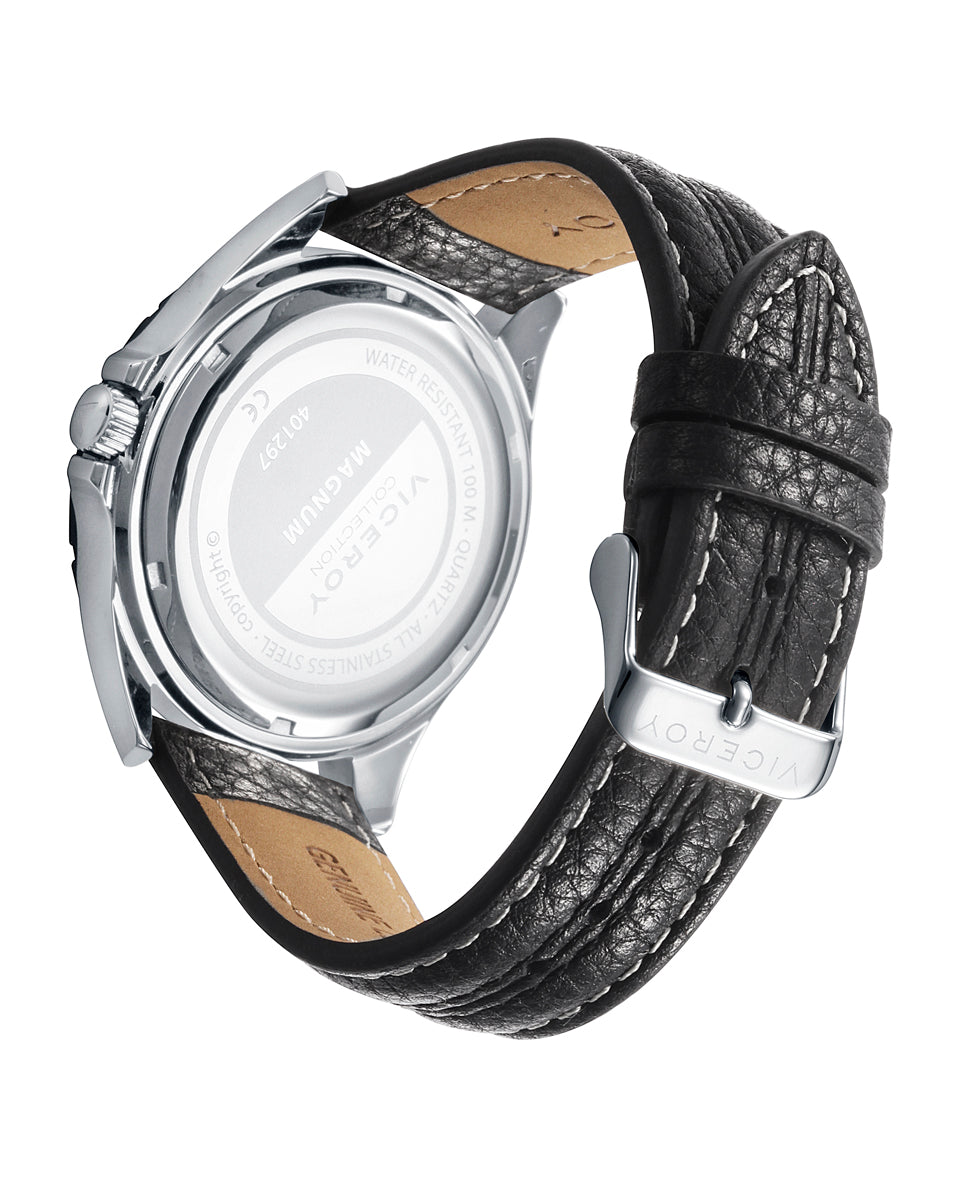 Orologio Magnum da uomo con cassa in acciaio bicolore e cinturino in pelle nera
