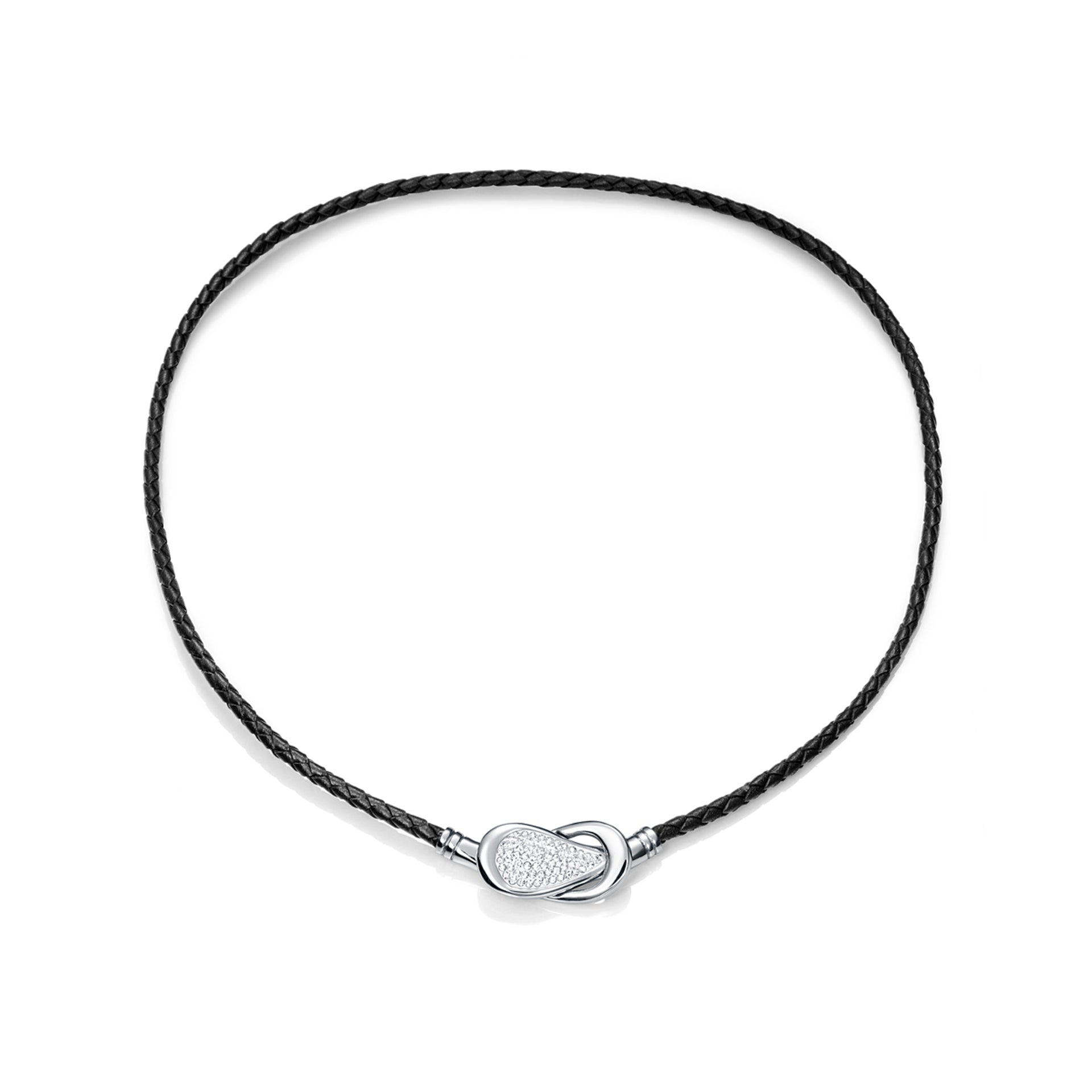 Collar Chic 75079C01010 de acero y piel negra con circonitas