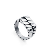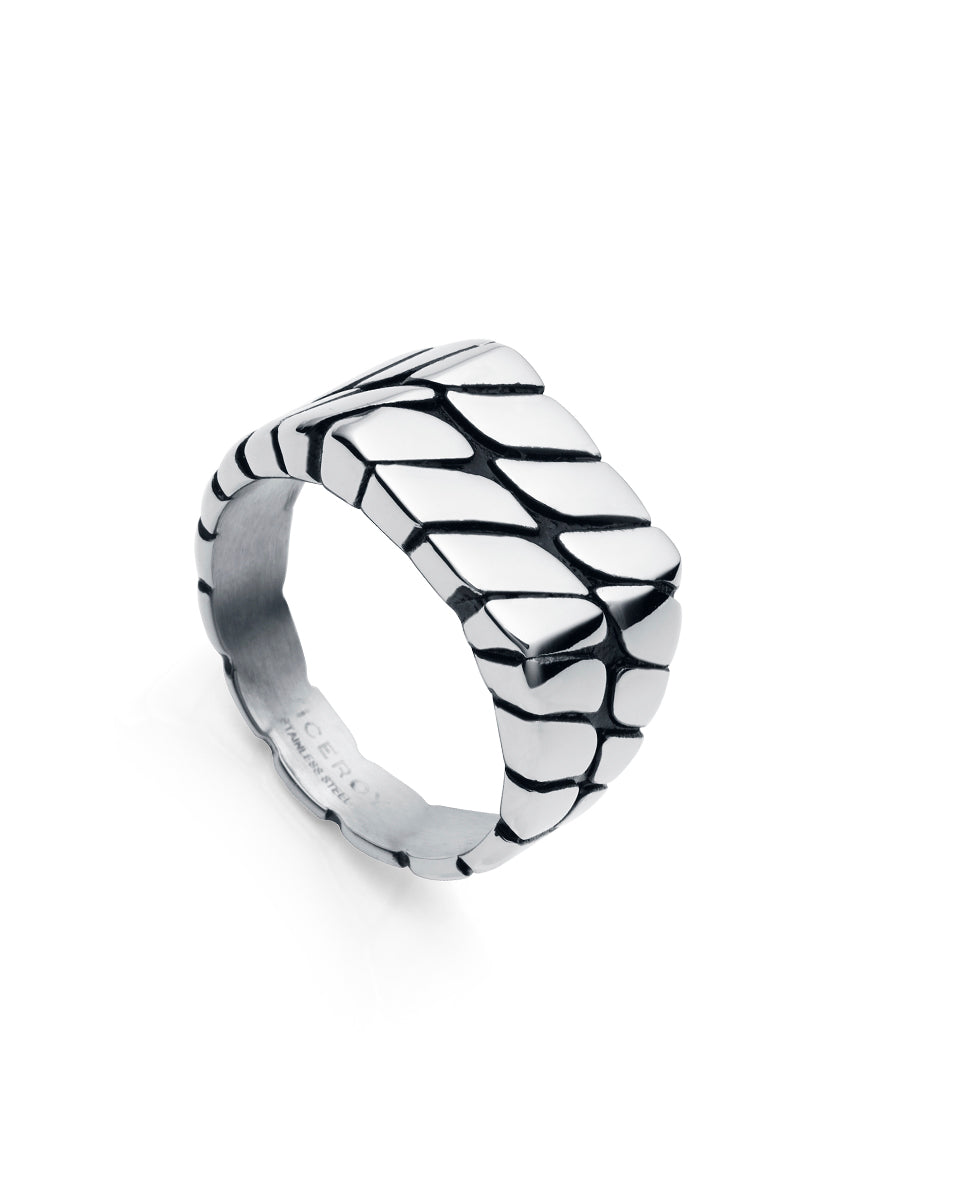 Anillo de hombre Beat de acero tipo sello y con motivos en esmalte negro