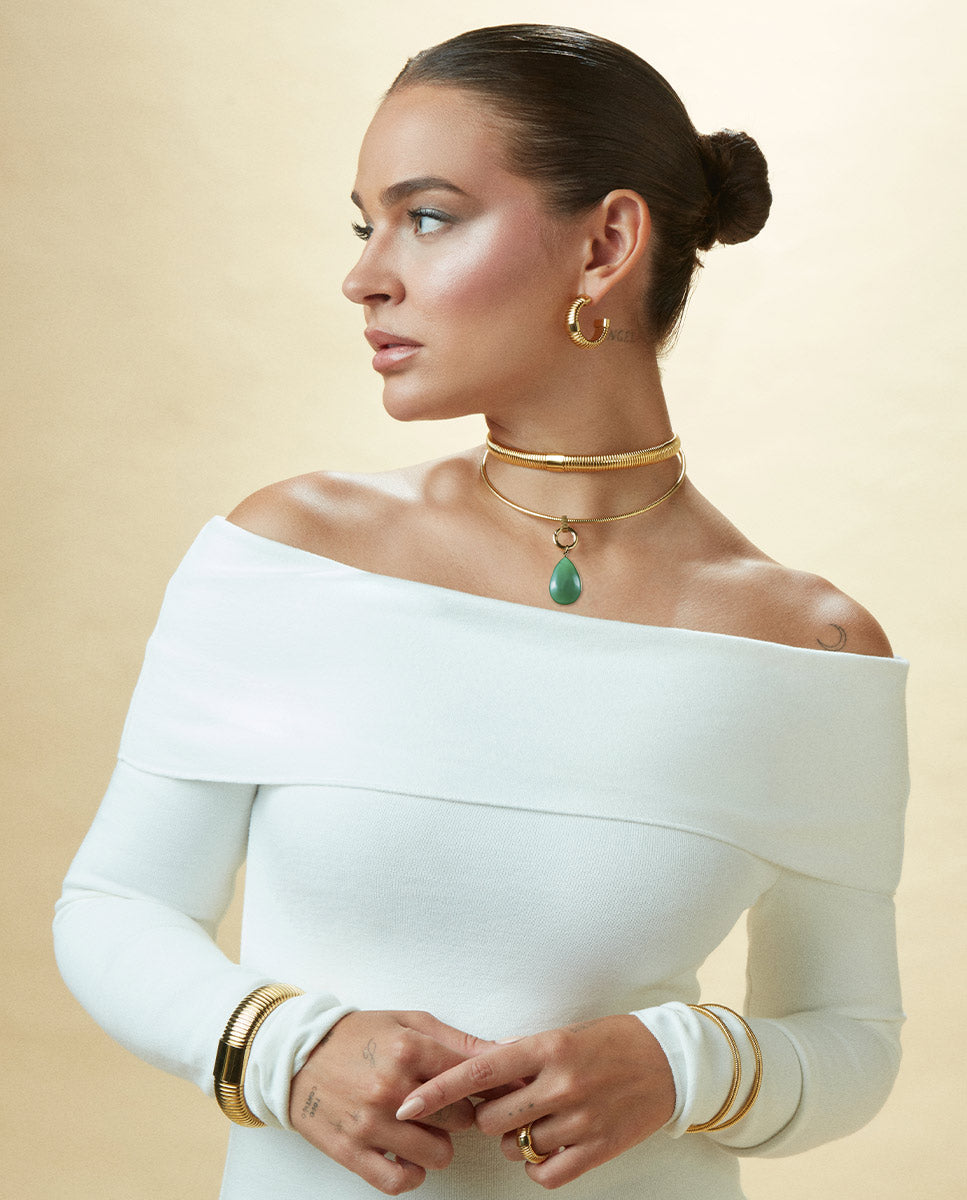 Evita el contacto directo con maquillaje, cremas o perfumes, así como el uso de líquidos abrillantadores y otros productos químicos, ya que podrían dañar el metal, la piel u otros elementos de la joya o reducir la duración del chapado.