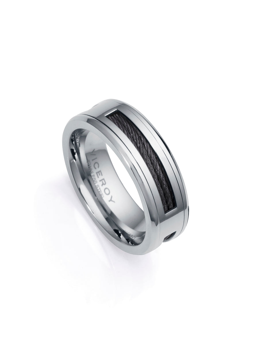 Anillo Magnum de acero con doble cable IP negro por dentro