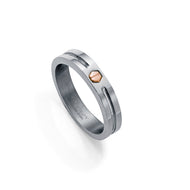 Anillo de hombre de acero con tornillo de oro rosa 9k