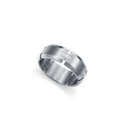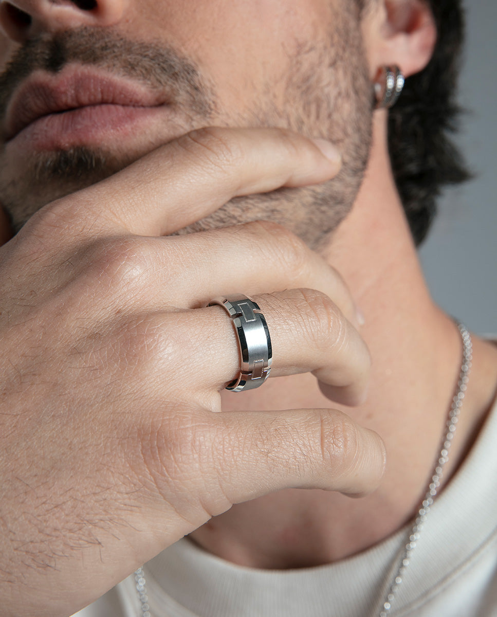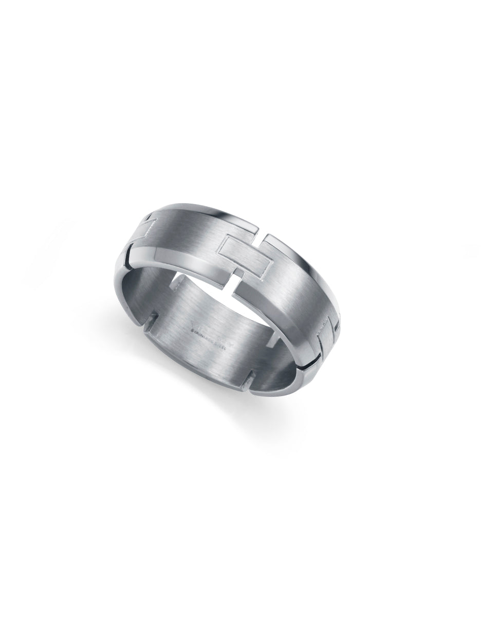 Anillo de hombre de acero con diseño elegante y actual. Disponible en tallas 20, 22, 24 y 26