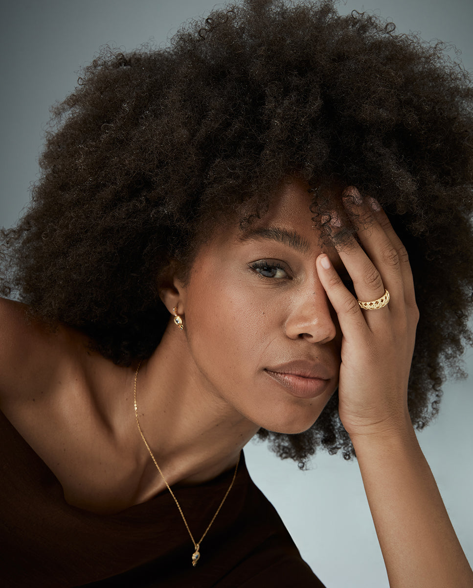 Límpiala con un paño especial para joyas o con un poco de agua templada con jabón neutro, evitando que la piel o el cordón entre en contacto con el agua.