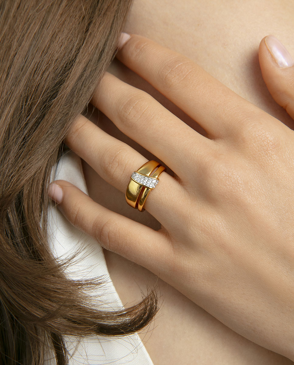 Anillo de plata de primera ley con baño de oro simil doble