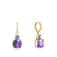 Anillo Elegant de plata de ley con baño de oro con cristales de color azul y morado