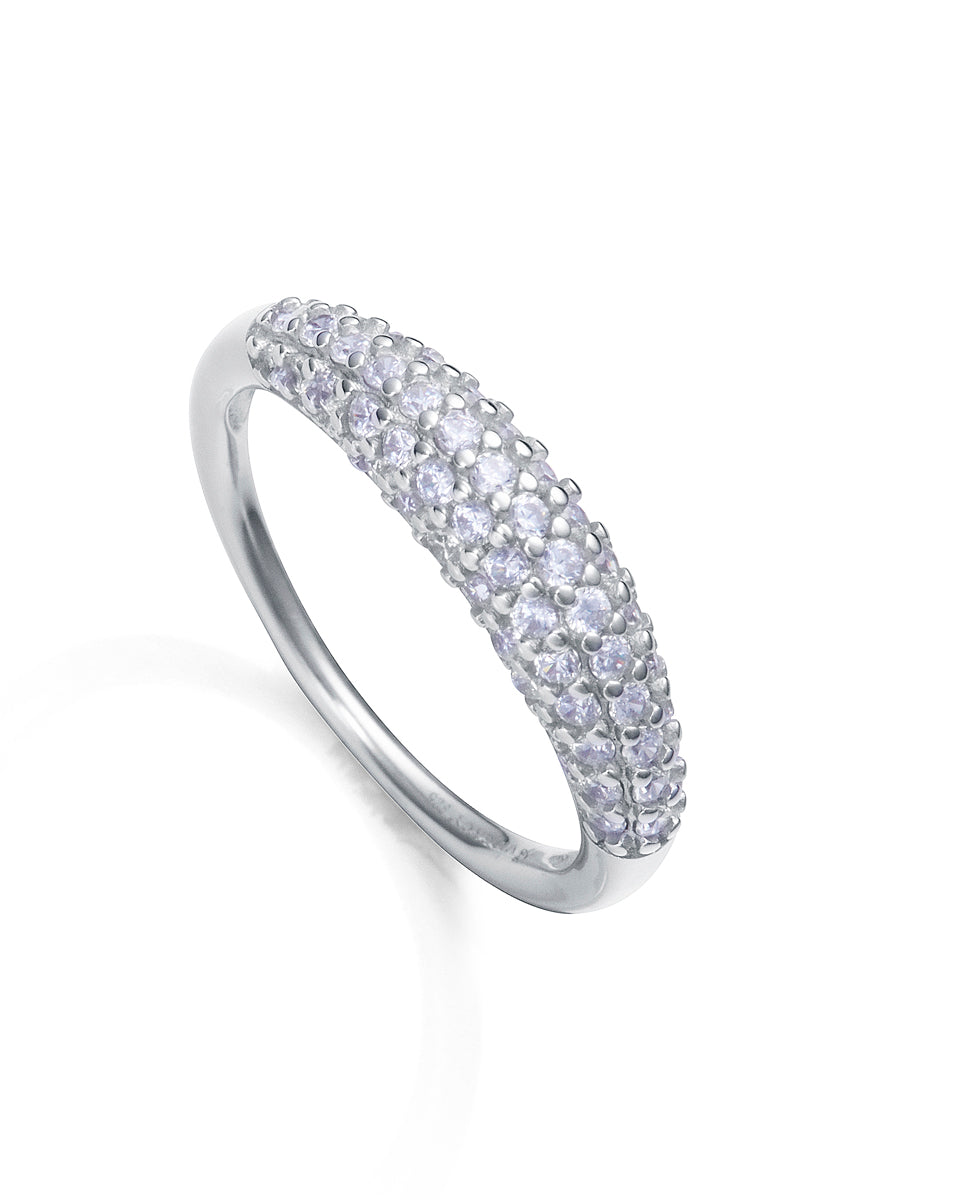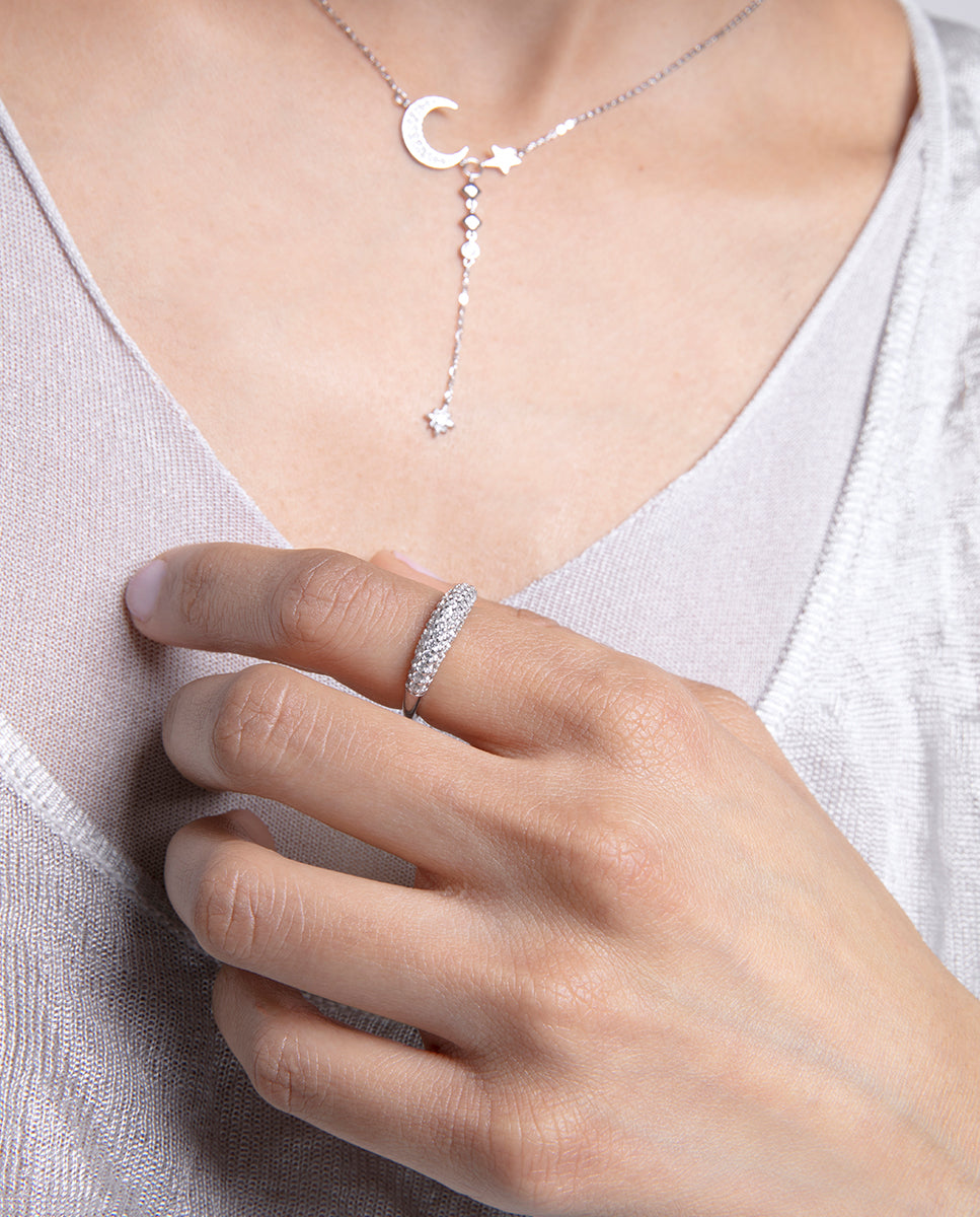 Anillo de plata de ley con baño de rodio y circonitas blancas