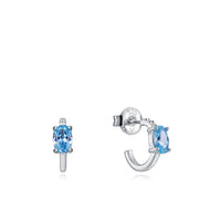 Anillo Clásica de plata de ley con baño de rodio y circonita color aguamarina blancas