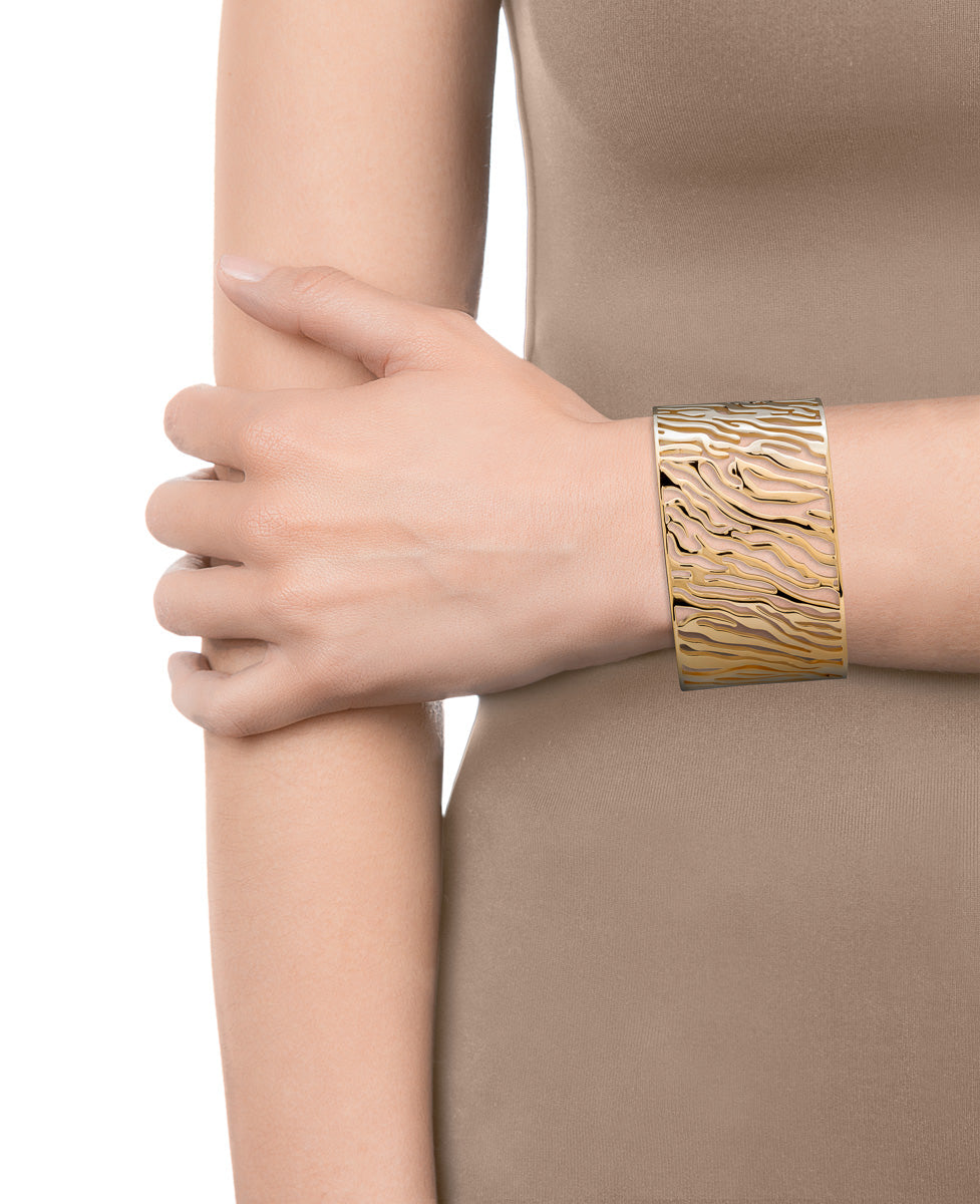 Evita el contacto directo con maquillaje, cremas o perfumes, así como el uso de líquidos abrillantadores y otros productos químicos, ya que podrían dañar el metal, la piel u otros elementos de la joya o reducir la duración del chapado.