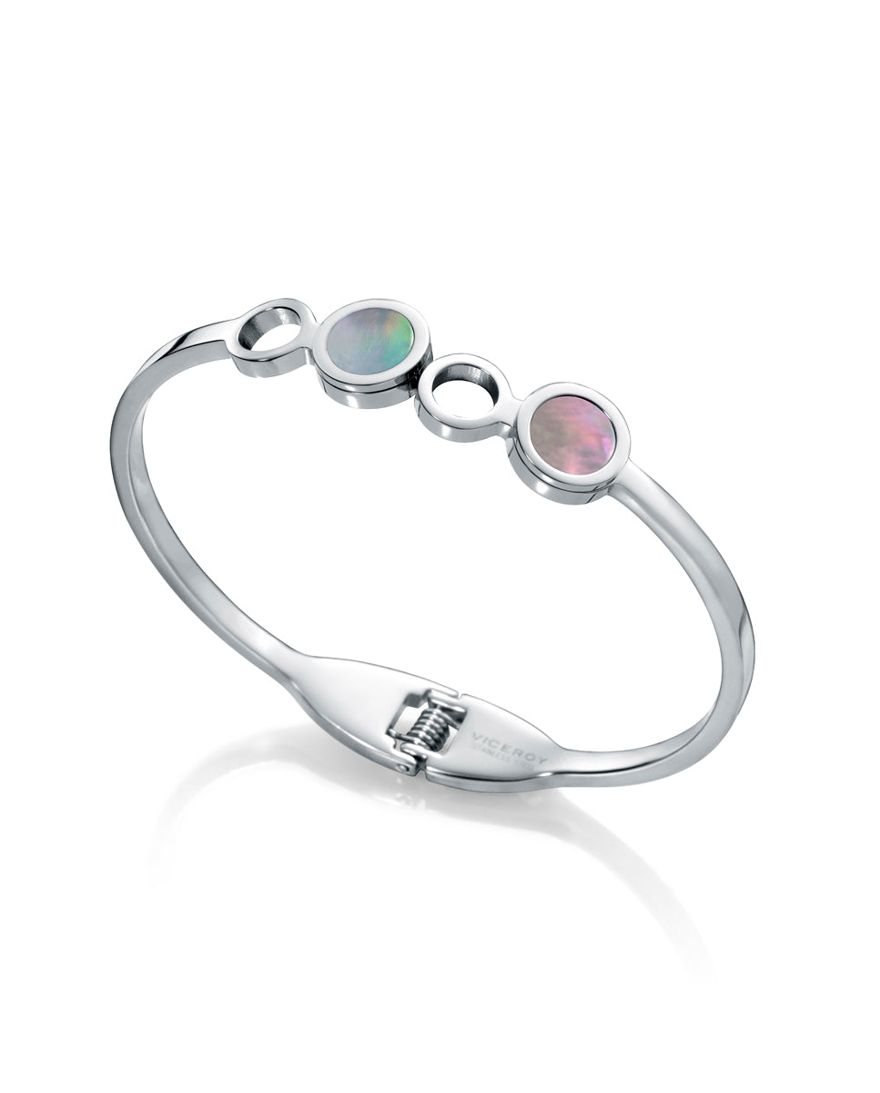 Brazalete de acero y madre perla con muelle