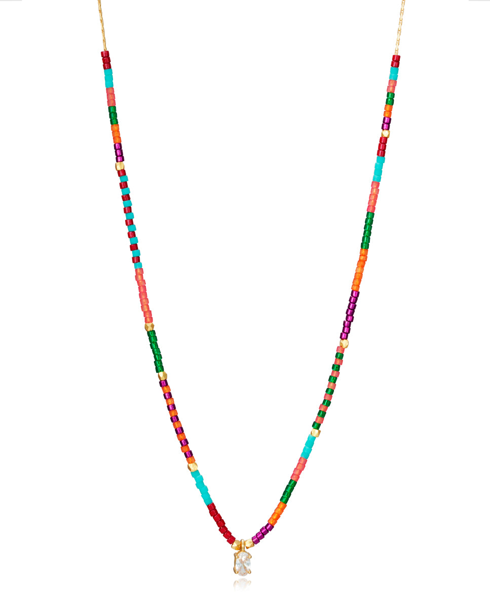 Collar Trend de plata de ley con baño de oro y cuentas de cristal en multicolor y circonita