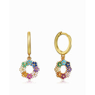Collar Trend de plata de ley con baño de oro y anilla de flores con circonitas multicolores