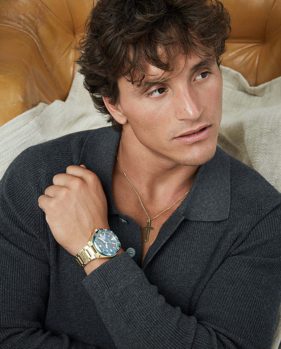 Collar de hombre de aceroIp dorado con colgante con cruz