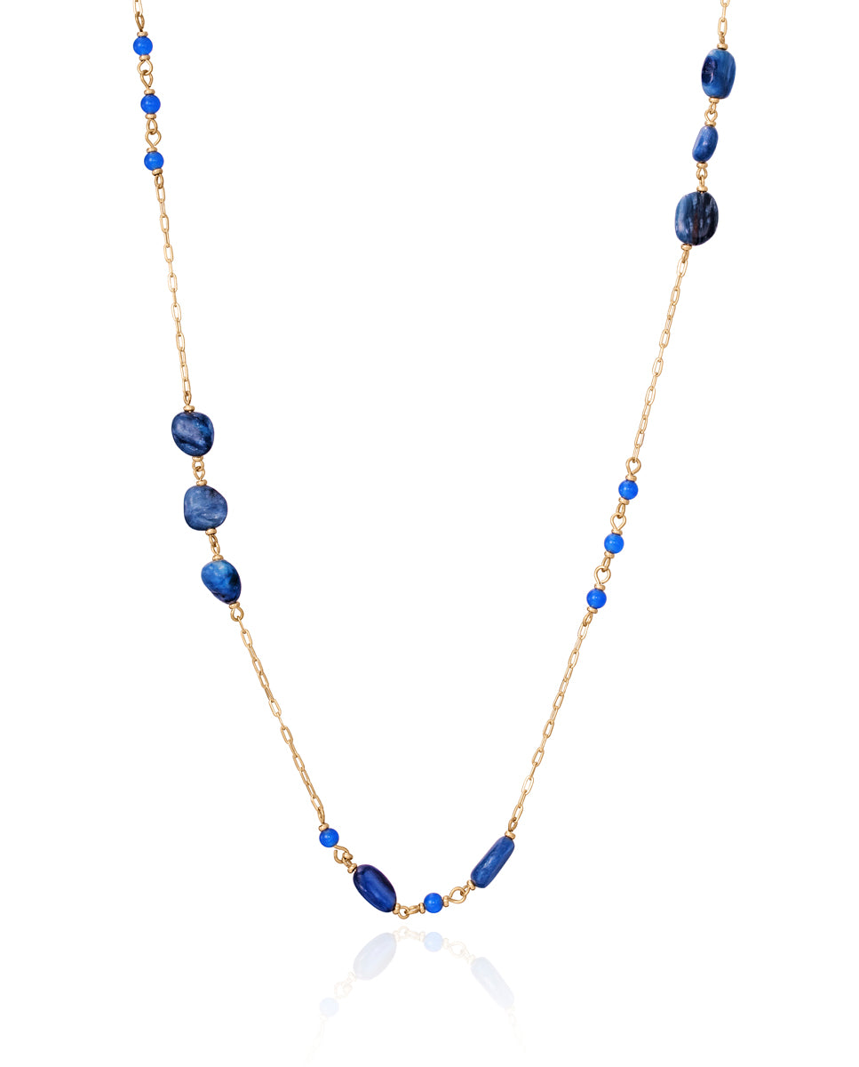 Collar Chic de acero Ip dorado con piedras naturales y sintéticas