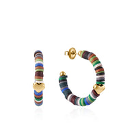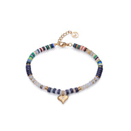 Collar Kiss de acero con piedras de colores y colgante corazón en Ip dorado