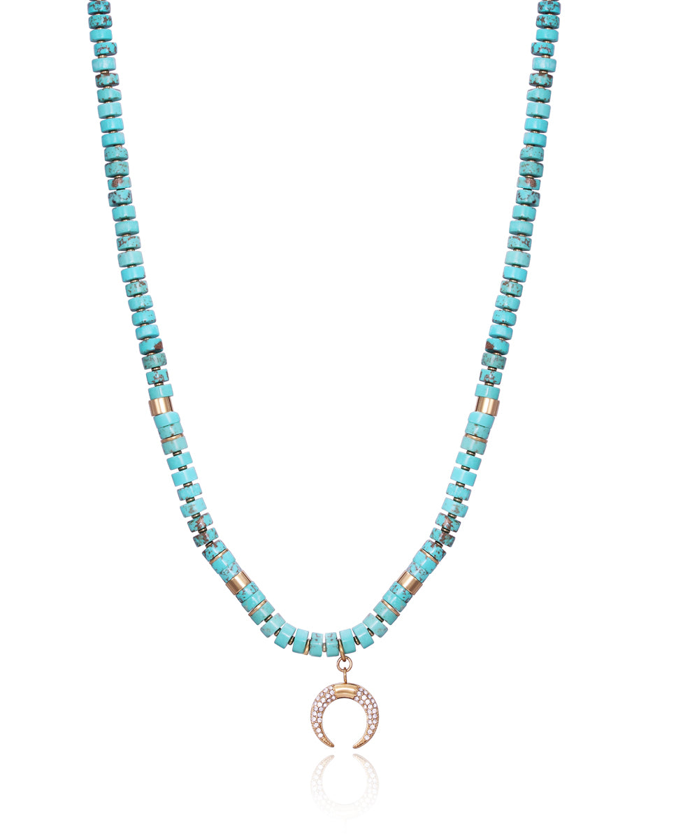 Collar Chic de acero Ip dorado con piedras naturales turquesa y colgante