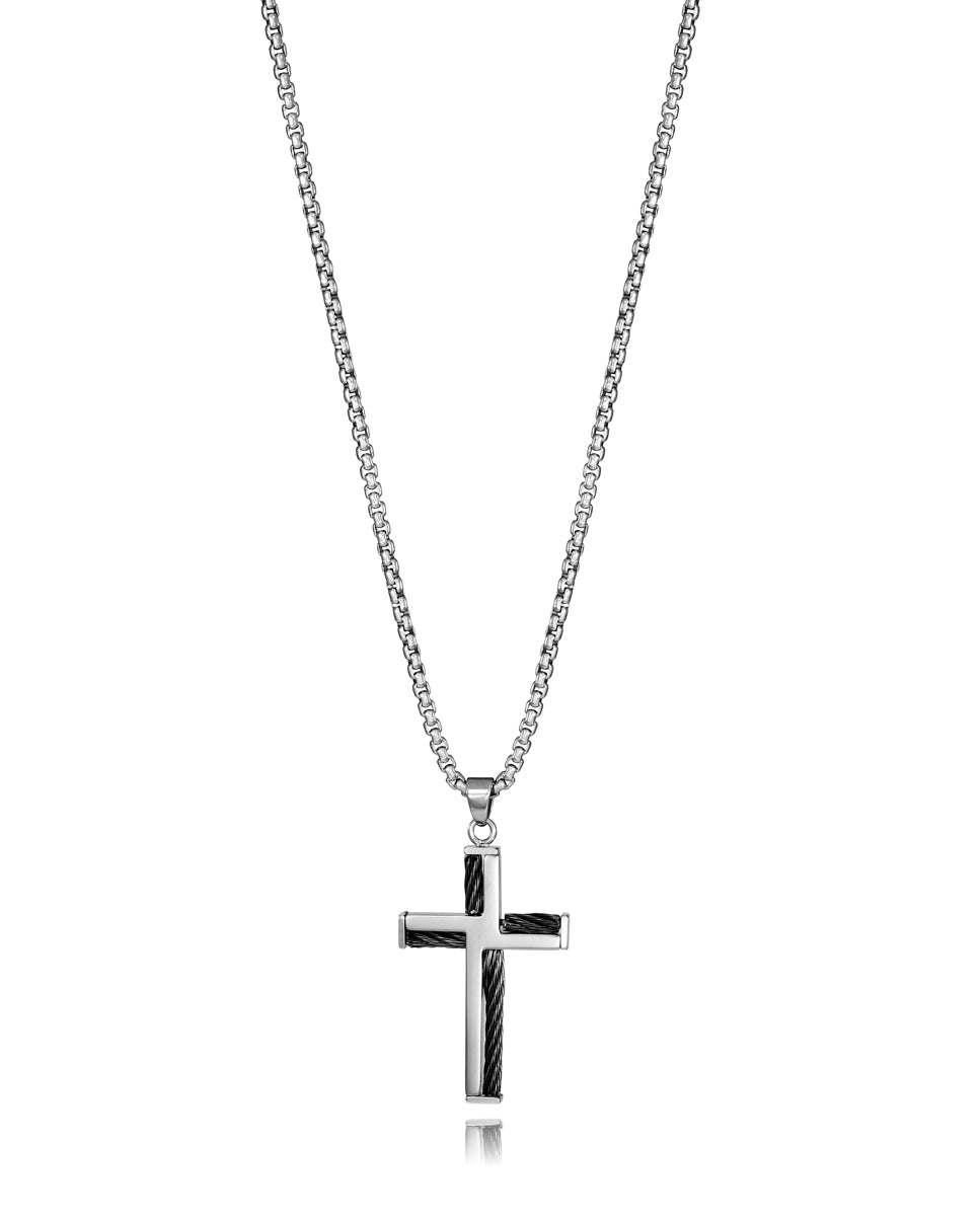 Collar de hombre de acero con cruz colgante y acabado IP gris. Largo 55 + 5 cm