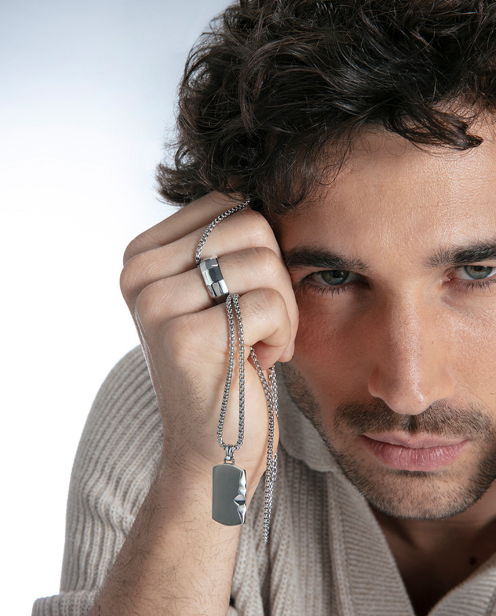 Collar de hombre de acero con cruz colgante, una pieza de líneas sobrias y presencia contemporánea que aporta un acabado elegante al estilo diario. Su diseño en acero con IP gris realza el carácter masculino del conjunto, mientras la cadena de 55 cm con extensión de 5 cm permite un ajuste cómodo y versátil. Un accesorio con equilibrio entre fuerza visual y sofisticación, pensado para acompañar looks casuales o más pulidos con discreta personalidadInformación del producto
