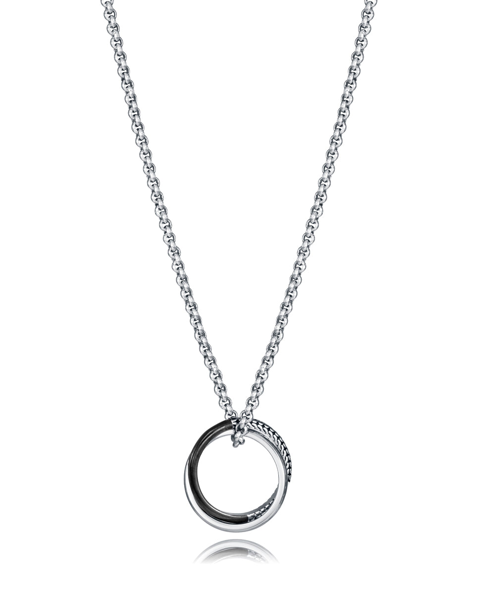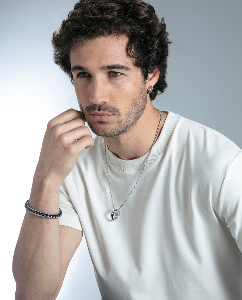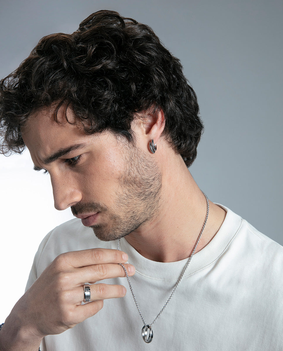 Collar de hombre de acero, una pieza de estilo actual que juega con el contraste de dos anillos colgantes en acero e IP negro para aportar carácter y presencia. Con un largo de 55 cm y extensión de 5 cm, se adapta con facilidad al cuello y completa cualquier look con un acabado sobrio, moderno y muy versátilInformación del producto