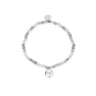Límpiala con un paño especial para joyas o con un poco de agua templada con jabón neutro, evitando que la piel o el cordón entre en contacto con el agua.