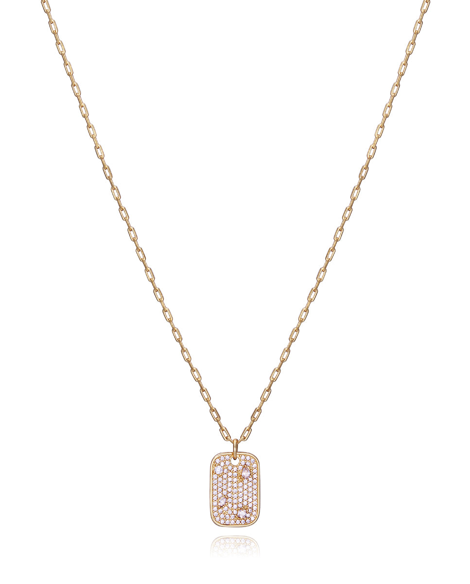 Collar Elegant de plata de ley con baño de oro y placa colgante con circonitas blancas