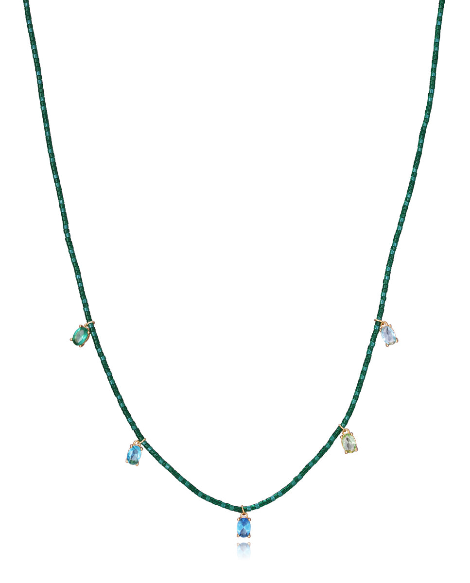 Collar Trend de plata de ley bañado en oro con cristales verdes y azules