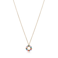 Collar Elegant de plata de ley con baño de rodio y colgante de aro con circonitas de colores
